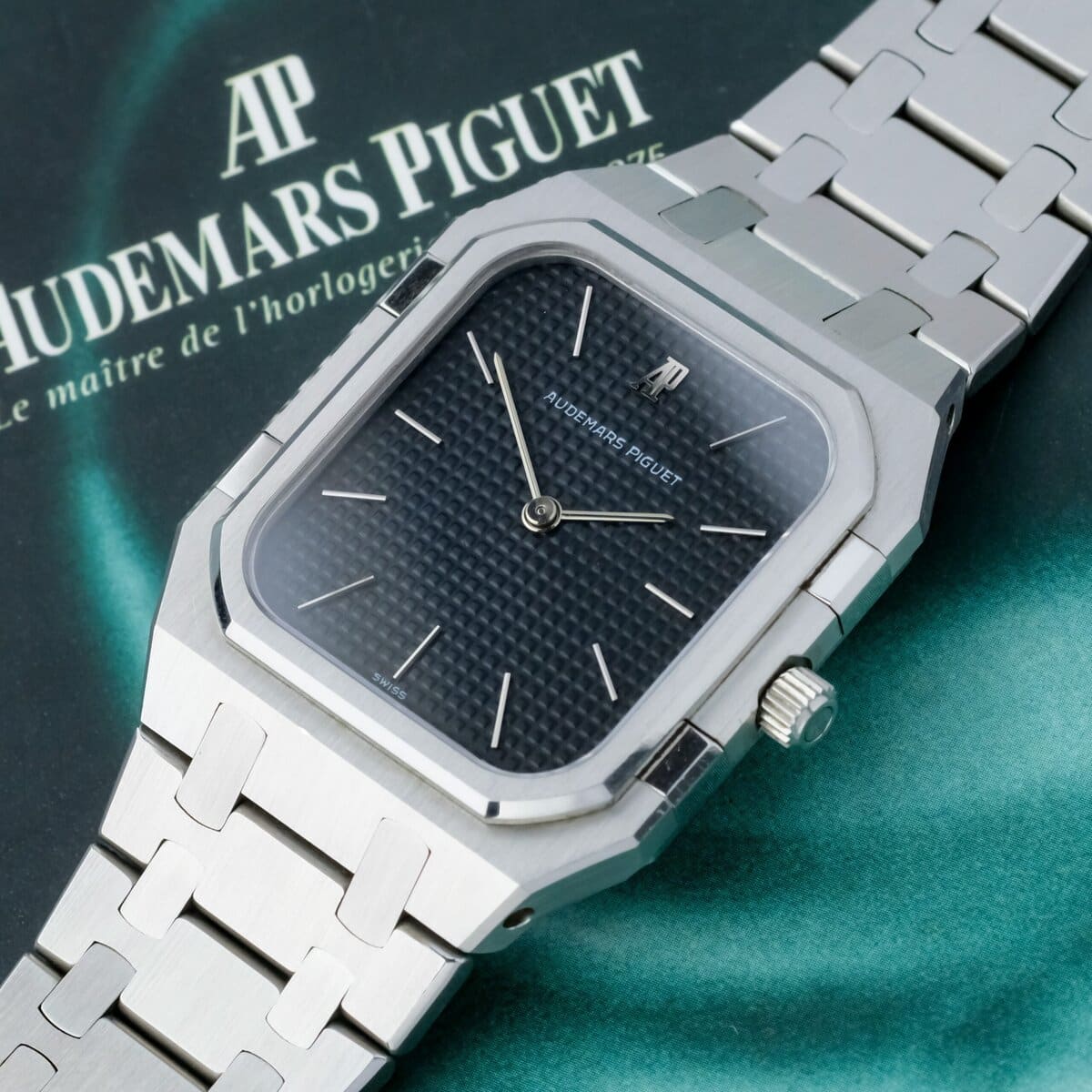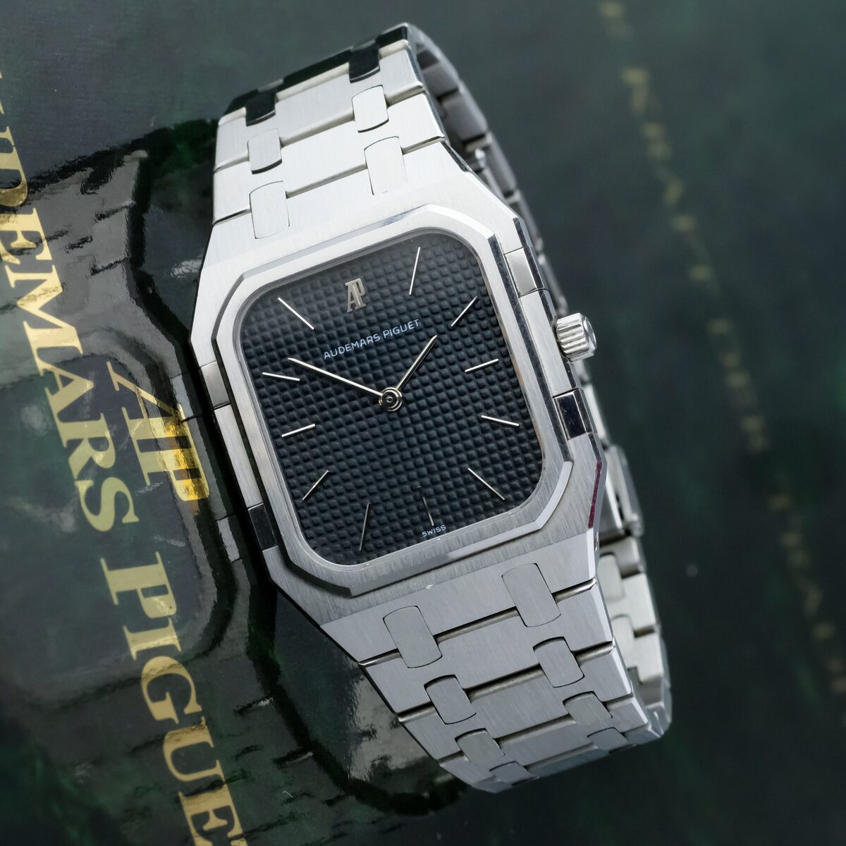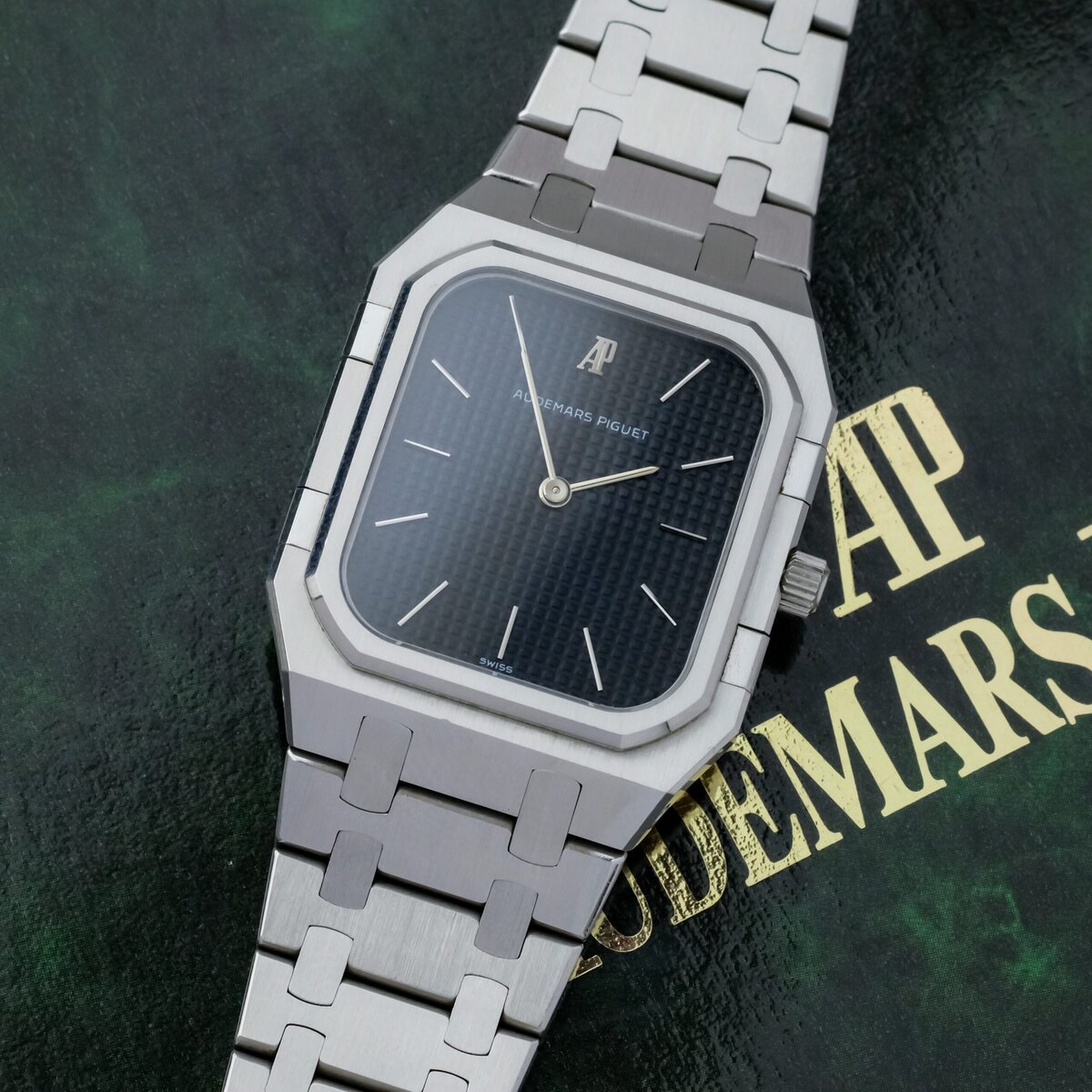 The watch is powered by a precise quartz movement and fitted with an integrated stainless steel bracelet that remains in exceptional condition, showing no stretch and retaining its original factory finishing. The polished and brushed surfaces are perfectly preserved, reflecting the meticulous craftsmanship for which Audemars Piguet is renowned.