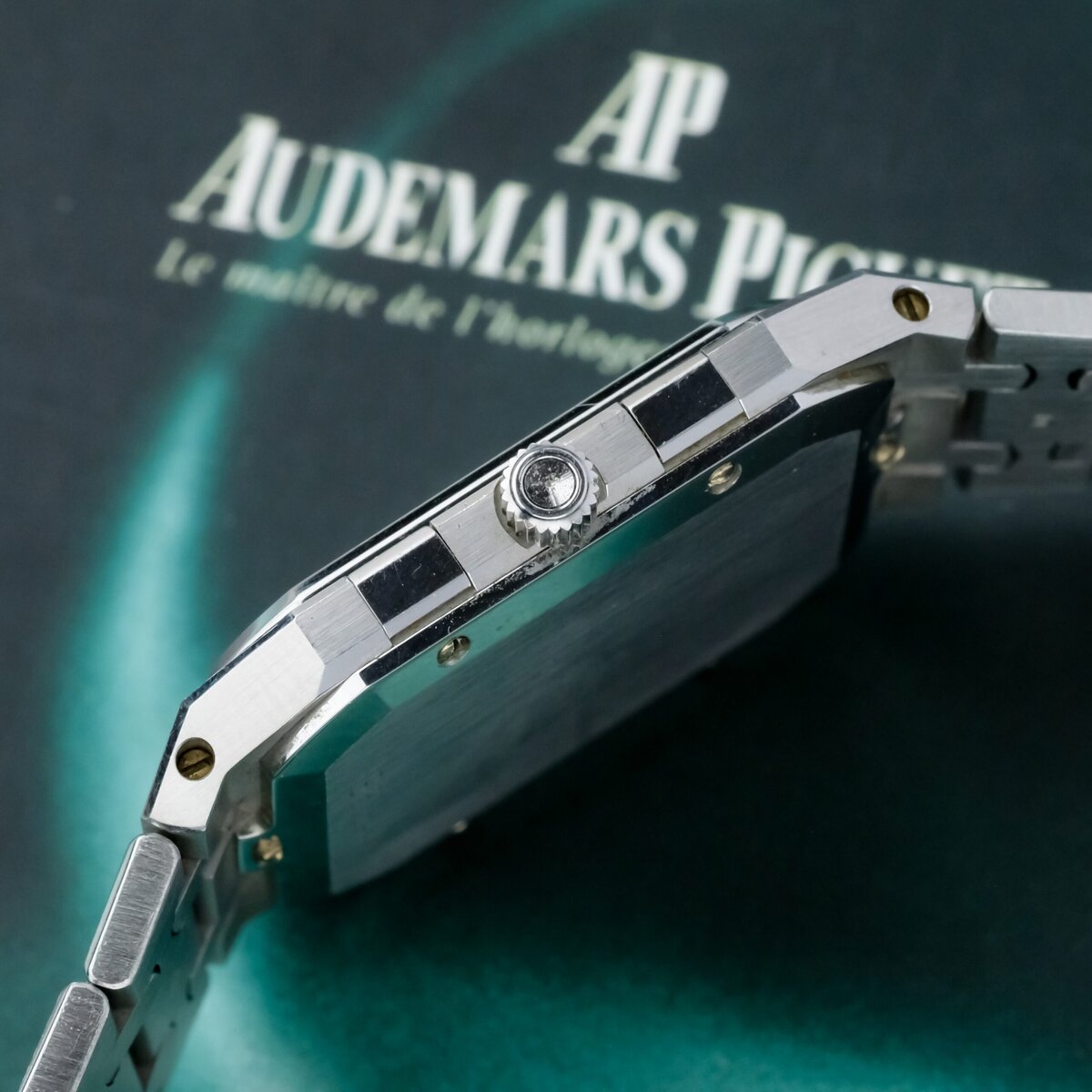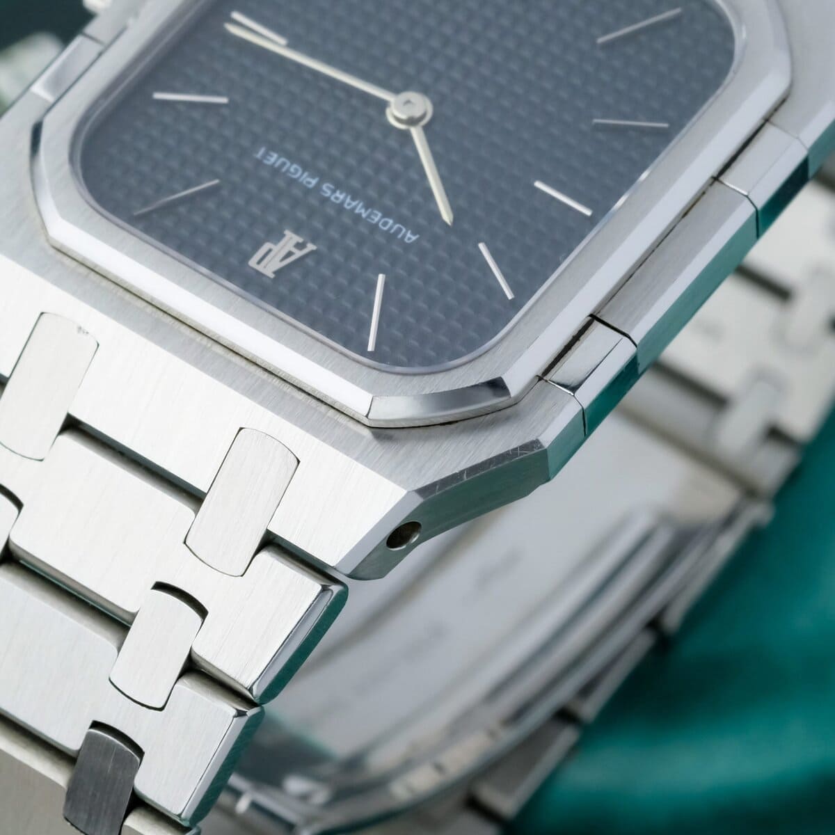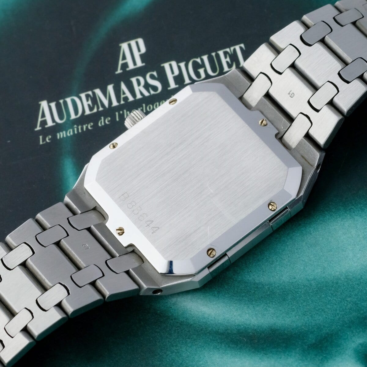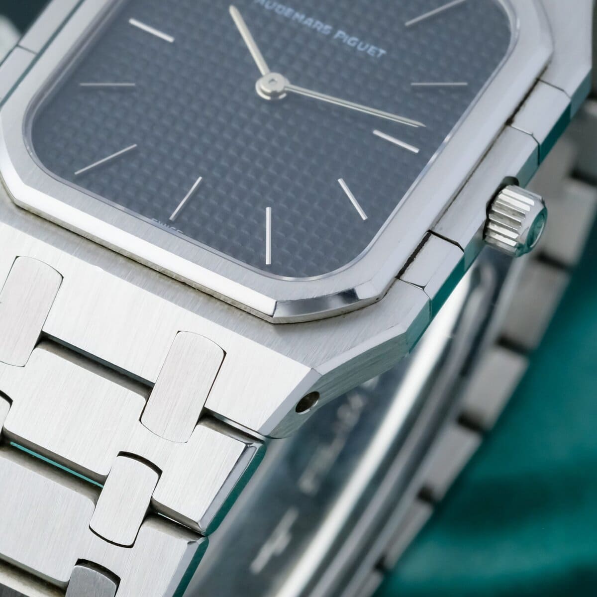 The watch is powered by a precise quartz movement and fitted with an integrated stainless steel bracelet that remains in exceptional condition, showing no stretch and retaining its original factory finishing. The polished and brushed surfaces are perfectly preserved, reflecting the meticulous craftsmanship for which Audemars Piguet is renowned.