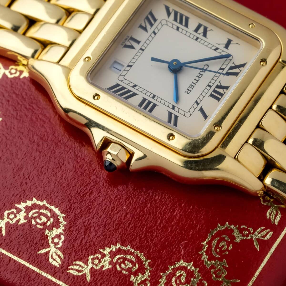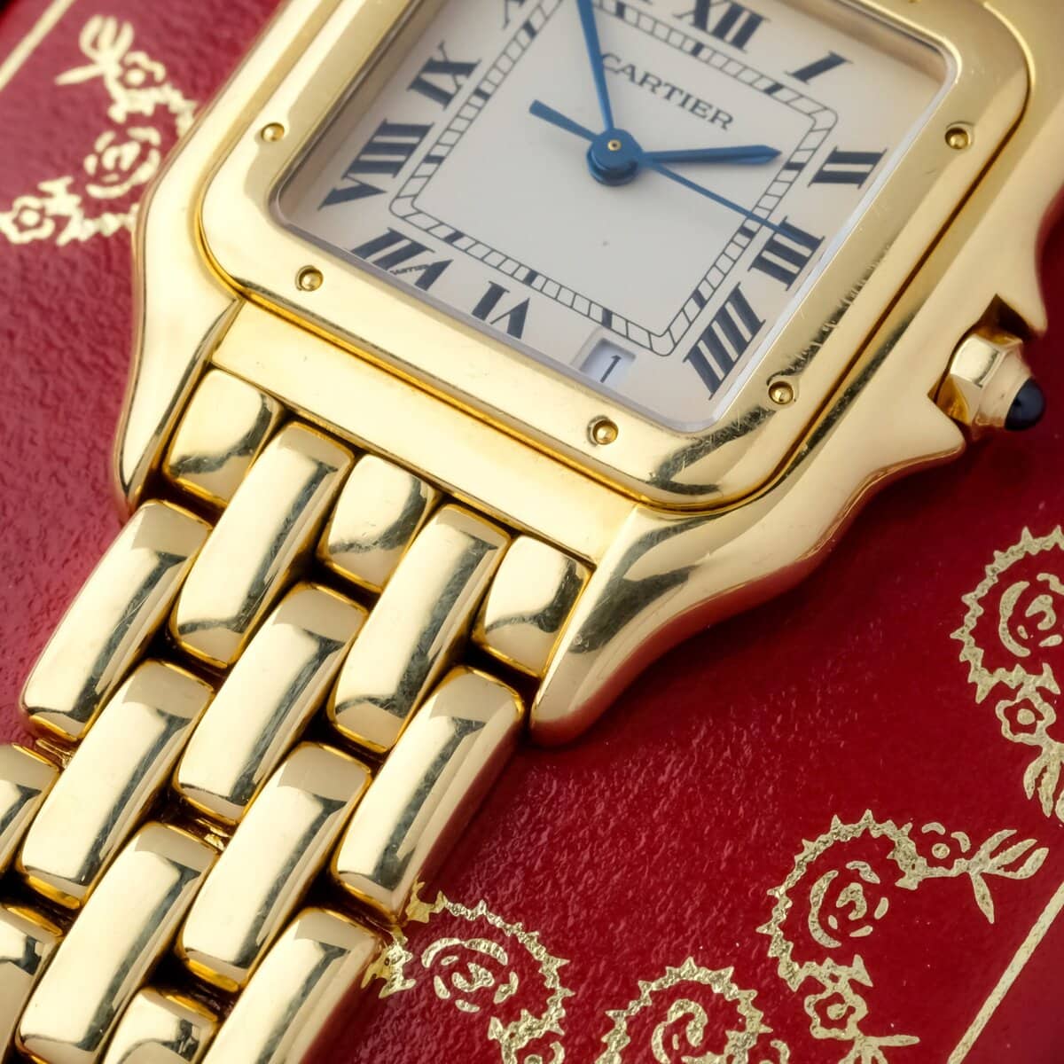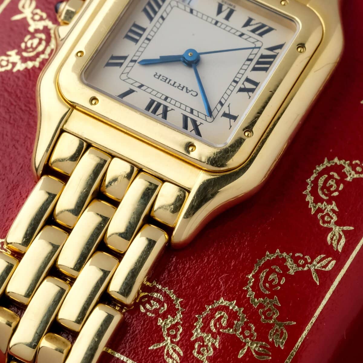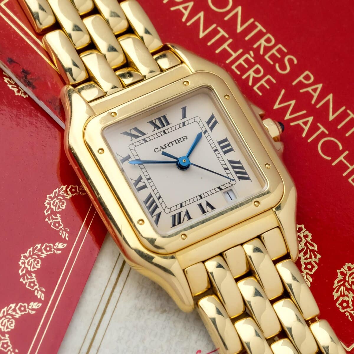 Cartier Panthère reference 8839 in 18k yellow gold, measuring 27 millimeters and powered by a quartz movement. This example dates from 1988 and features the classic Panthère case paired with the iconic integrated yellow gold bracelet.