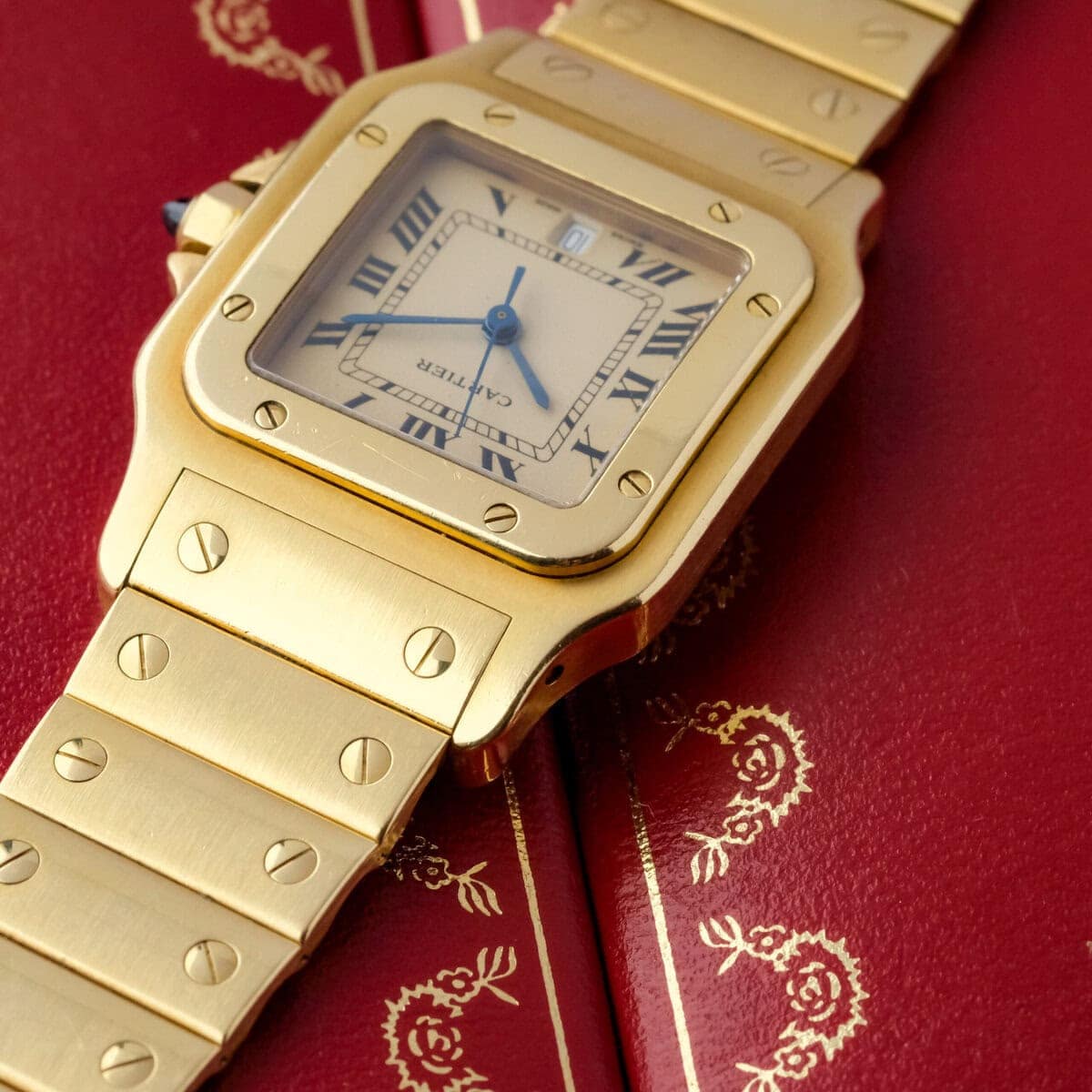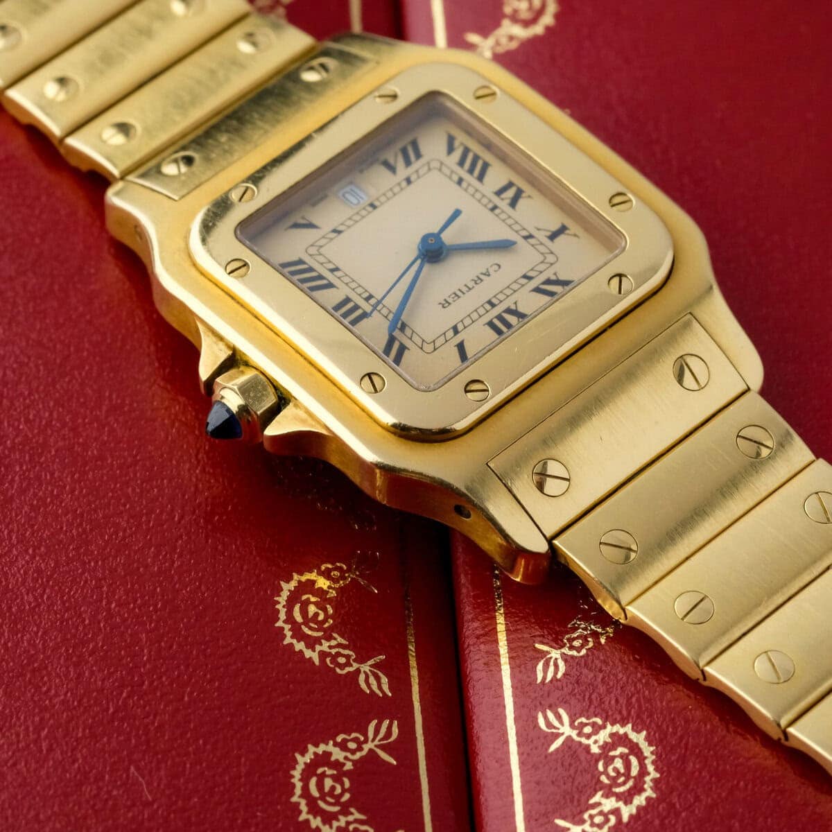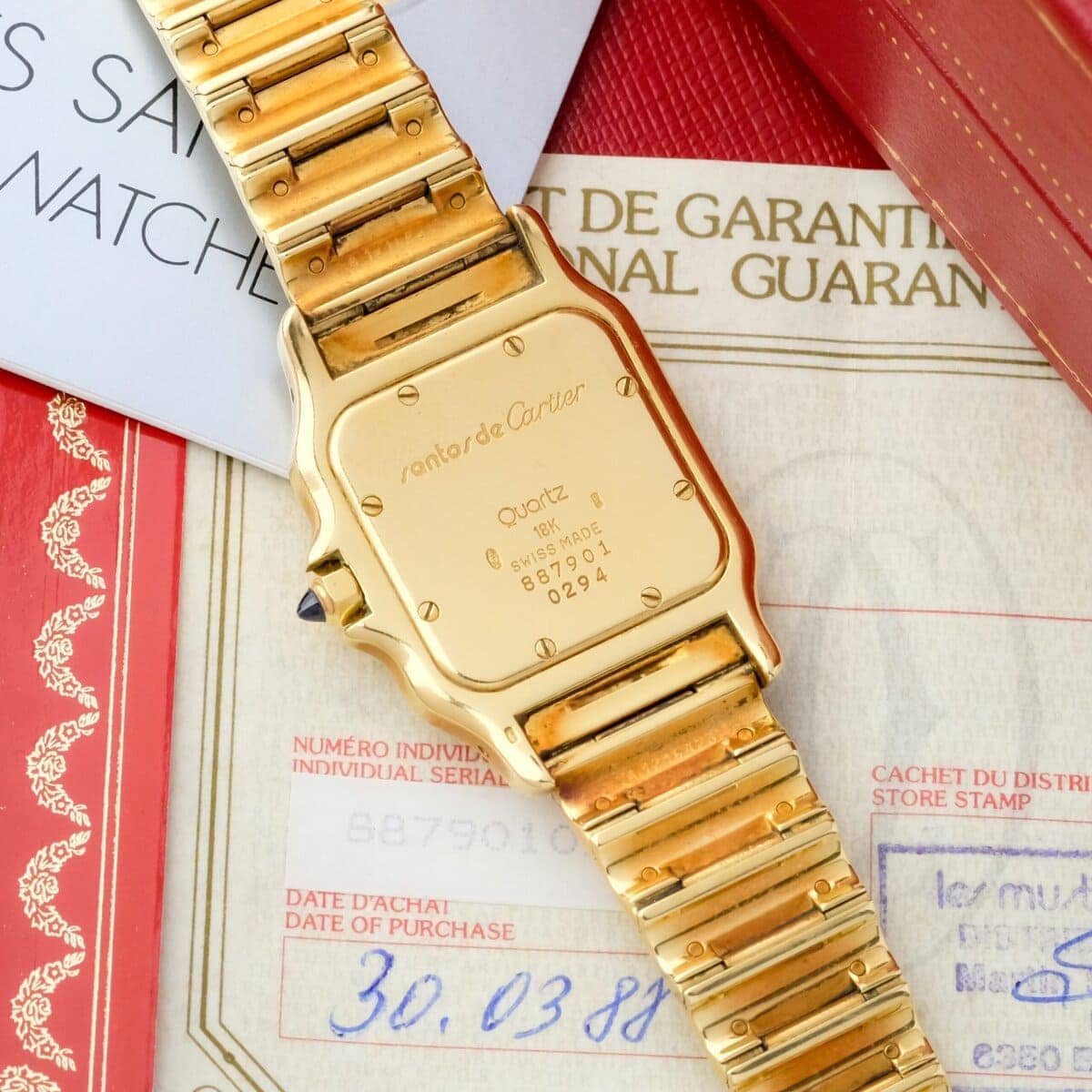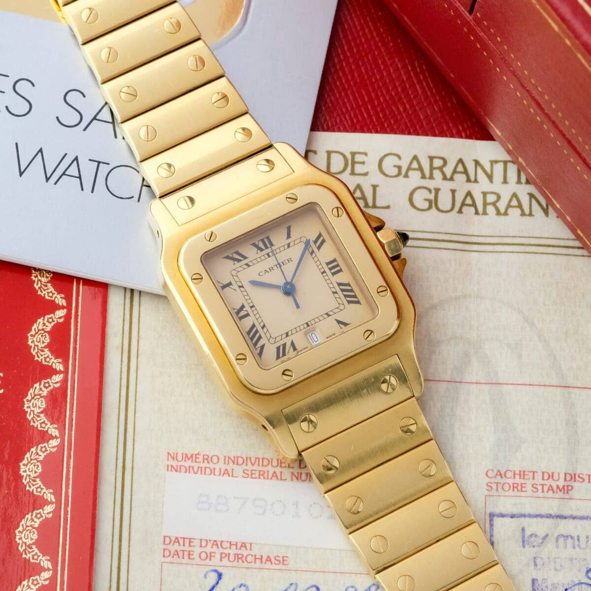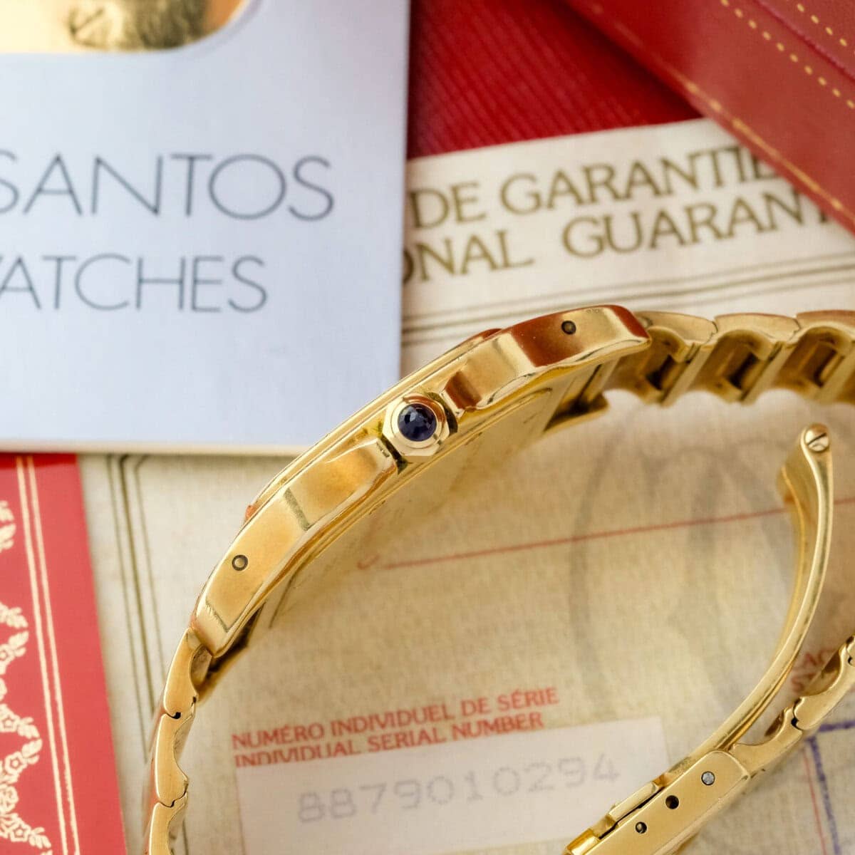 Offered as a full set, including its original box and papers, this 887901 is a rare all-gold Santos in excellent condition. It is an ideal piece for collectors seeking both Cartier heritage and timeless design in a pure, luxurious execution.