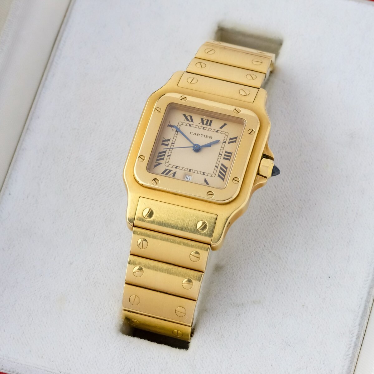 This Cartier Santos Galbée Ref. 887901 is a striking and luxurious version of the classic Santos, crafted entirely from 18k yellow gold. Unlike the later curved-case models, this version features the original straight-case design, giving it a more angular, vintage presence that echoes the earliest Santos references.