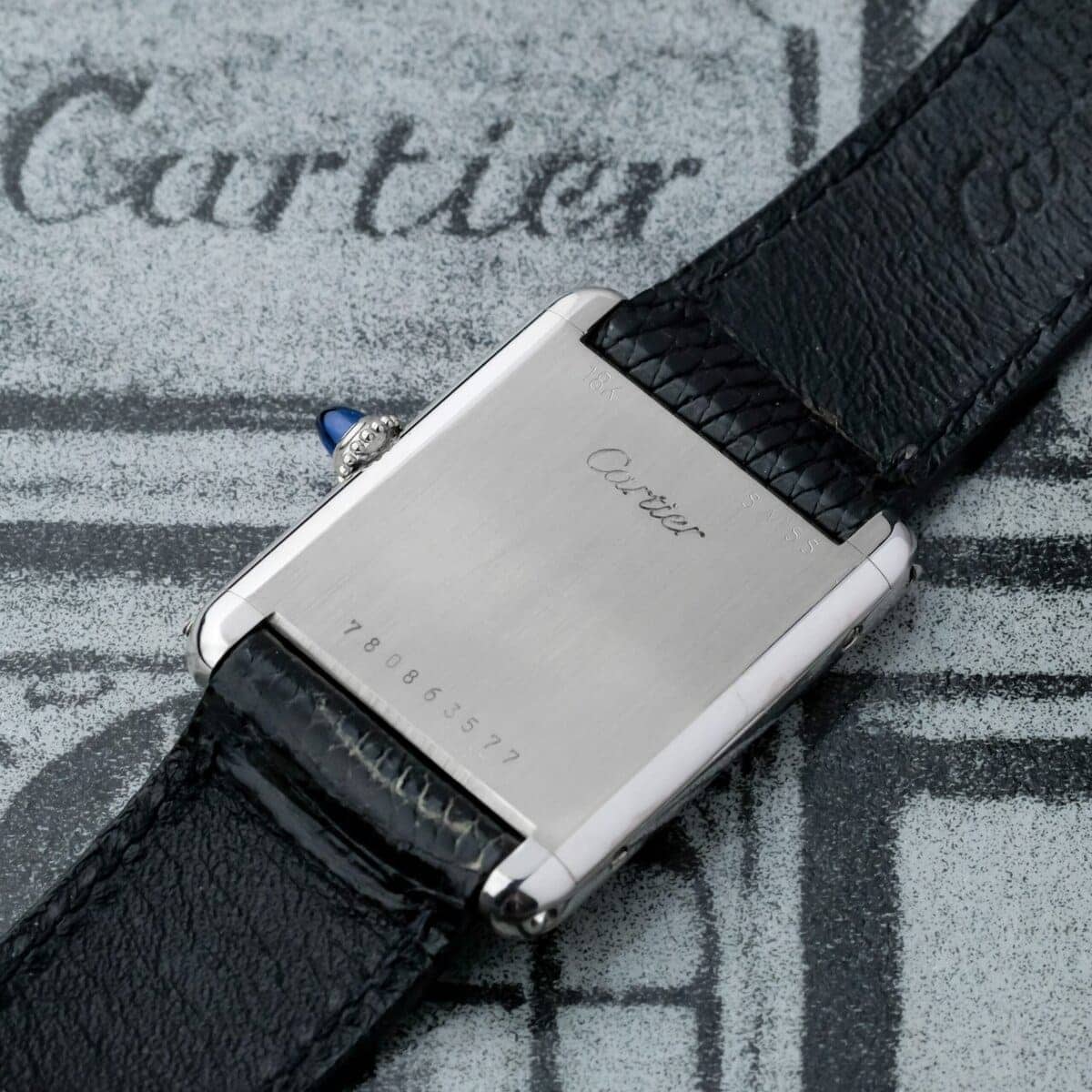 This Cartier Tank GM Ref. 78086 is a rare and elegant example from the sought-after New York branch, distinguished by its refined proportions and discreet luxury. Crafted from solid 18k white gold, the case retains its crisp hallmarks, showing the sharp lines and excellent definition collectors look for in vintage Cartier pieces.
