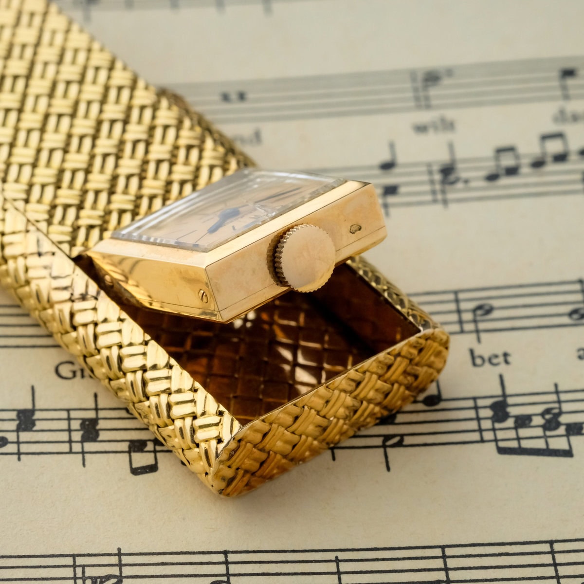 The case remains in very good overall condition, with crisp hallmarks and beautifully preserved gold surfaces. The crystal is currently cracked but will be replaced shortly. This rare and inventive creation captures the artistry and technical brilliance of the era, making it a remarkable collector’s piece from the golden age of design.
