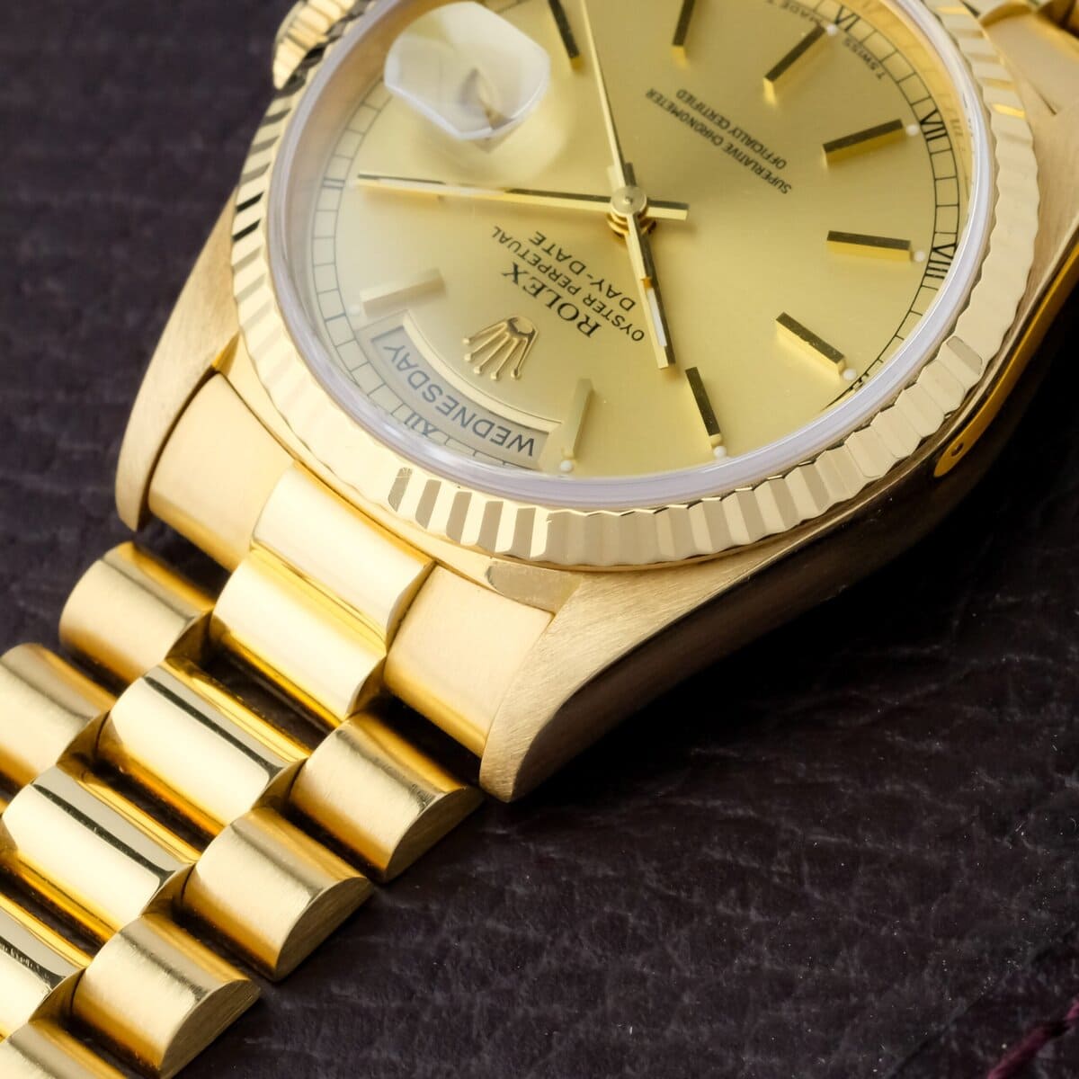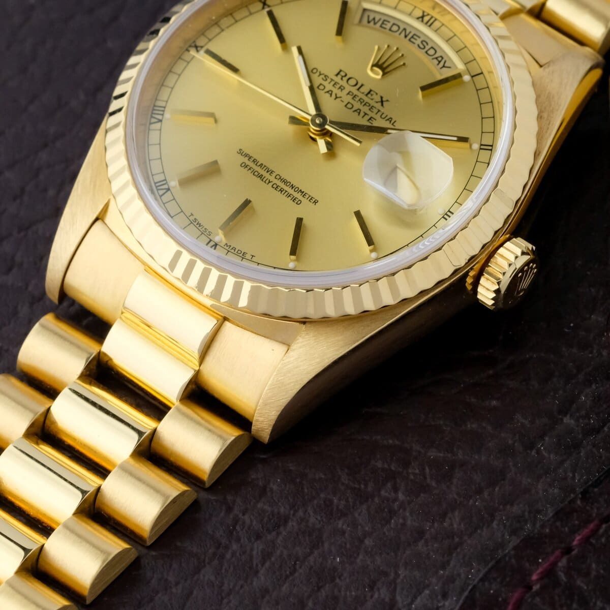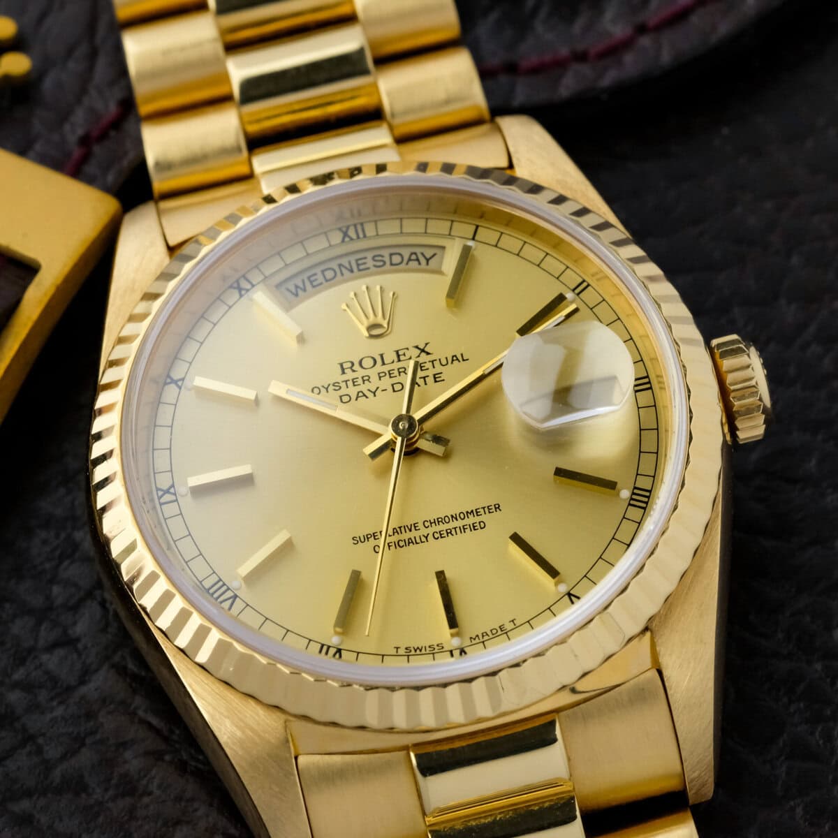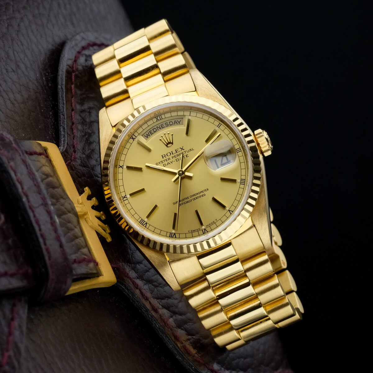 This Rolex Day Date reference 18238 is a quintessential example of one of the brand’s most iconic and prestigious timepieces. Crafted entirely in 18k yellow gold, the 36 millimeter case embodies the perfect balance of elegance and presence that has defined the Day Date since its debut.