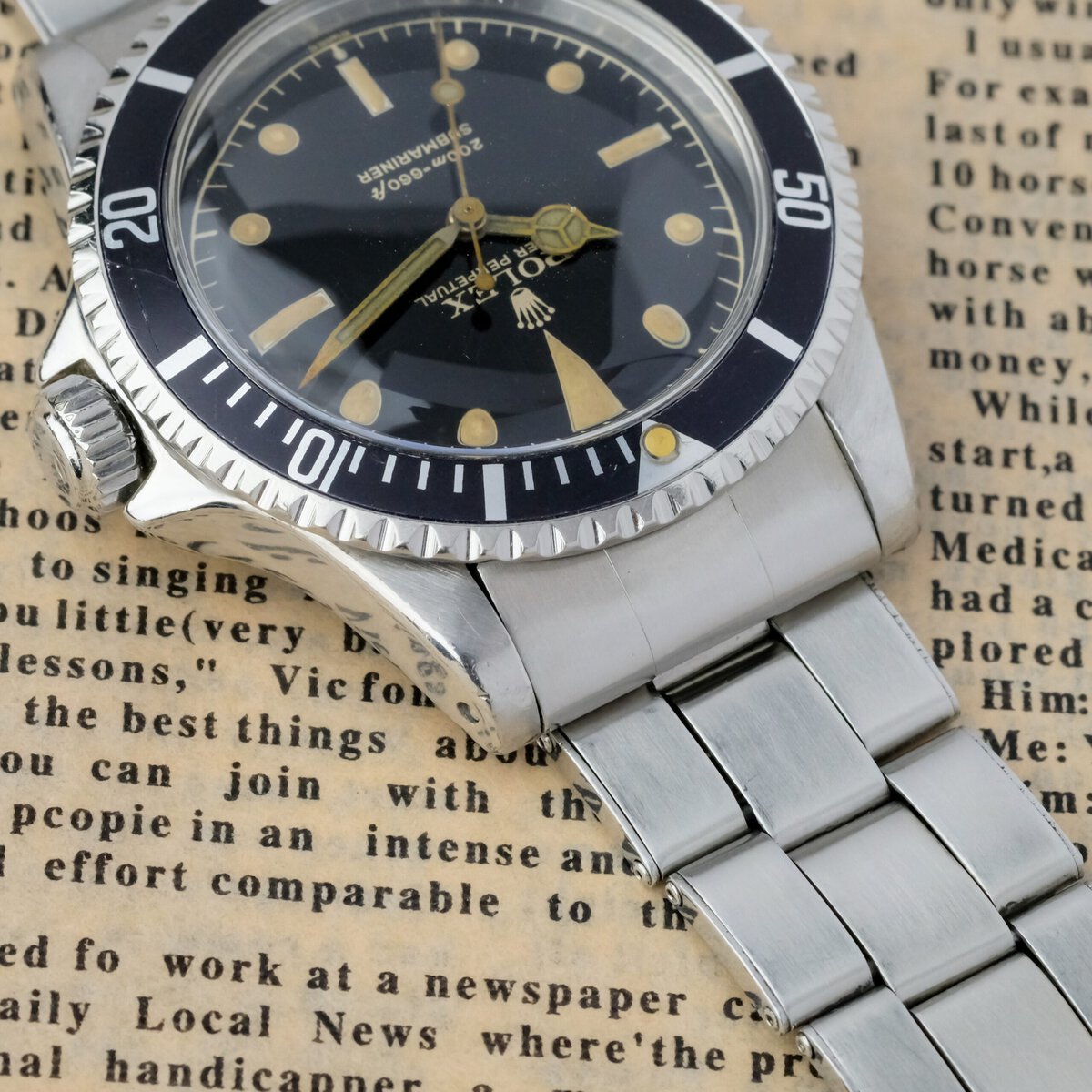 This Rolex Submariner reference 5512 is an exceptional vintage example from the early 1960s featuring the desirable pointed crown guard case and the rare exclamation mark dial. These early production details make it one of the most collectible configurations in the Submariner lineage.