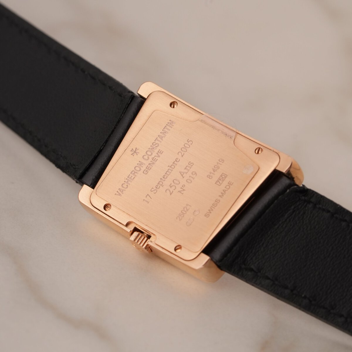 This Vacheron Constantin 1972 Ref. 25021/000R-9191 is a highly collectible piece created to celebrate the maison’s 250th anniversary, paying homage to one of its most daring and unconventional designs. The asymmetrical case, instantly recognizable, is crafted in solid 18k rose gold, combining avant-garde aesthetics with refined Geneva watchmaking tradition.
