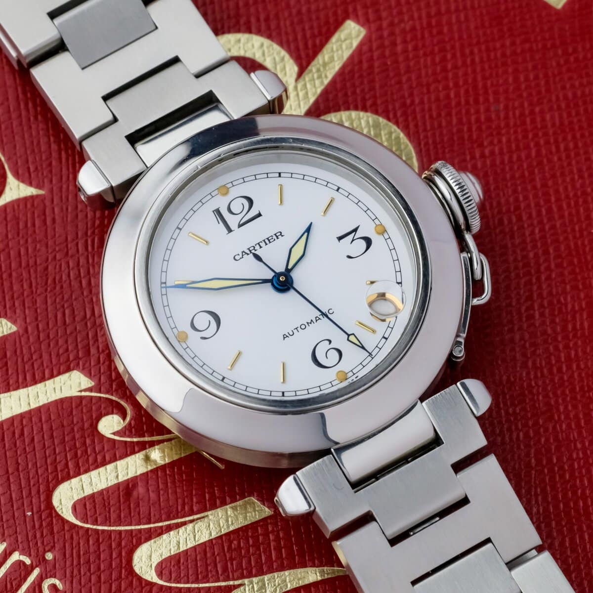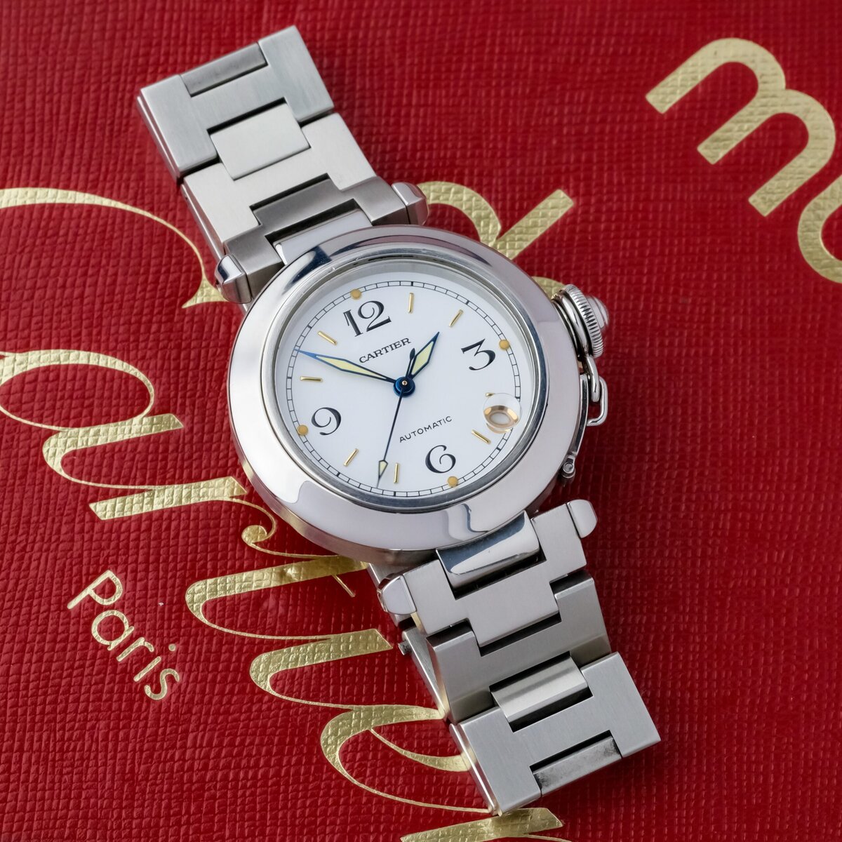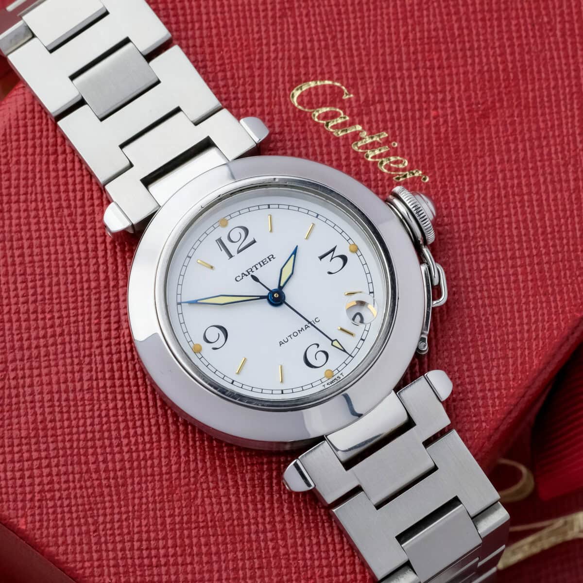 Nur als Uhr angeboten, ist diese Pasha 2324 ein einfaches und attraktives Beispiel für eines der bekanntesten sportlich-eleganten Designs von Cartier.
