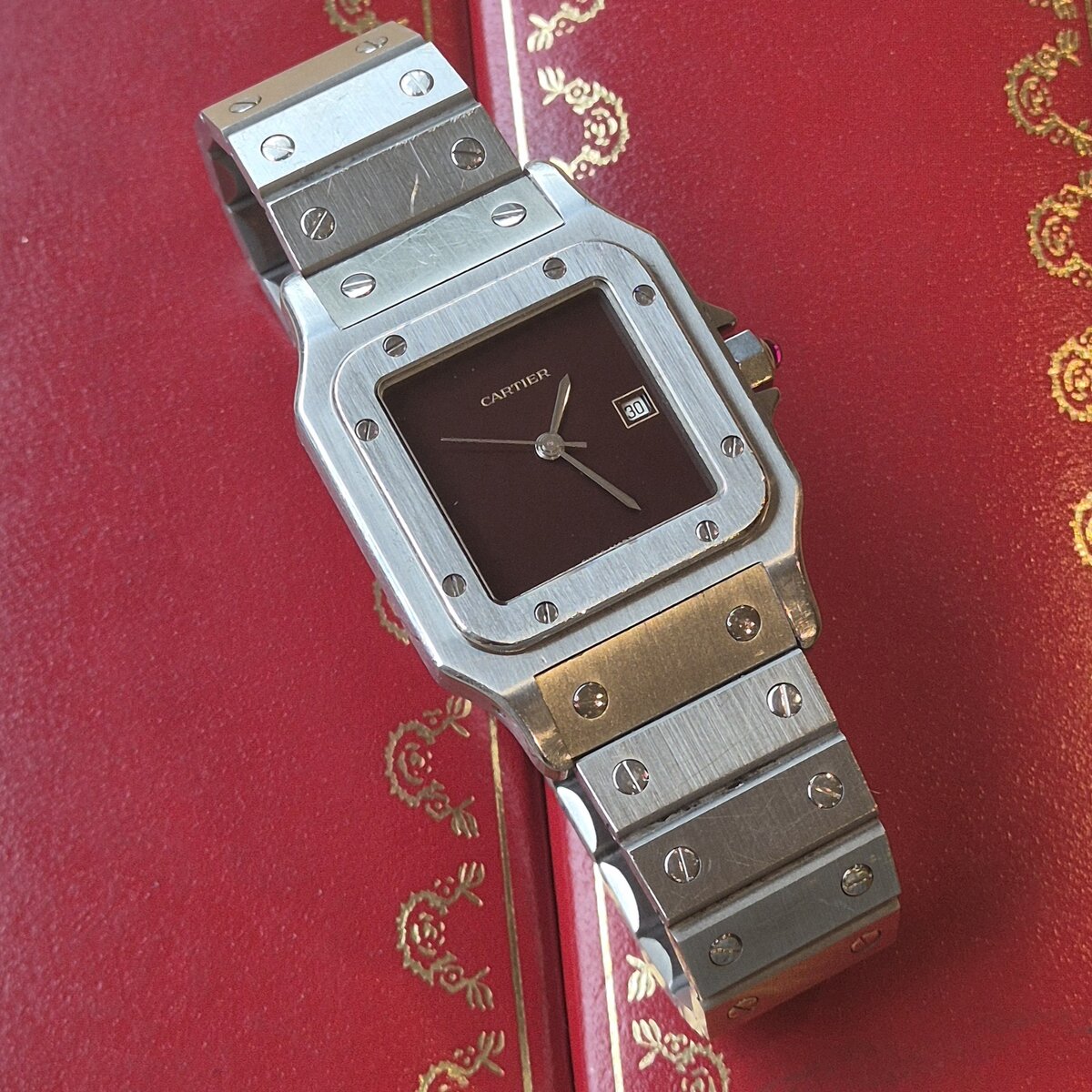 Cartier Santos Carrée ref. 2960 burgunderrot