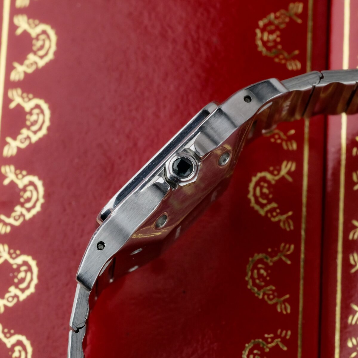 Angeboten als ein komplettes Set einschließlich der Originalrechnung, steht diese Santos Carrée als Sammler und ungewöhnliche Konfiguration Ghost Dial in attraktivem Zustand.