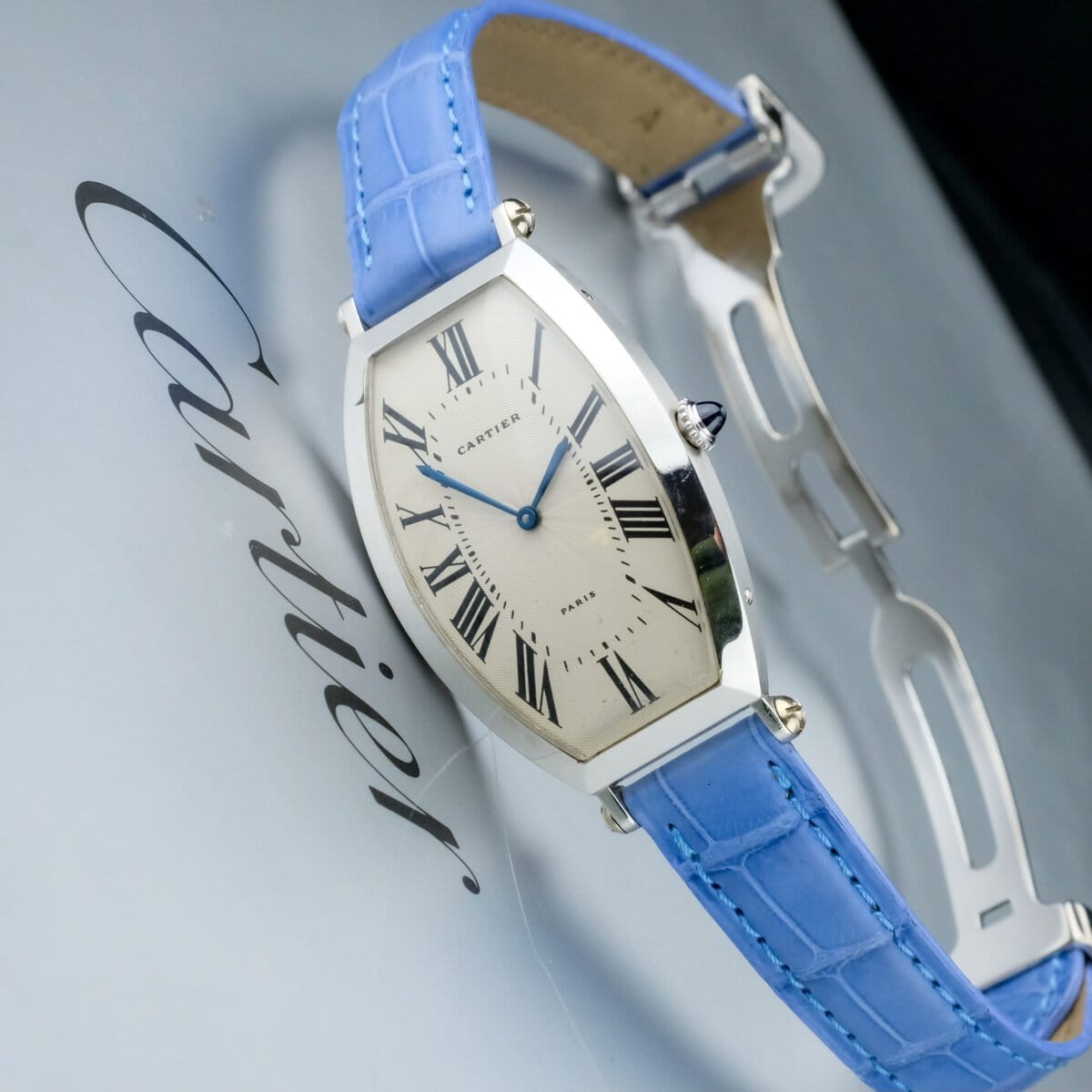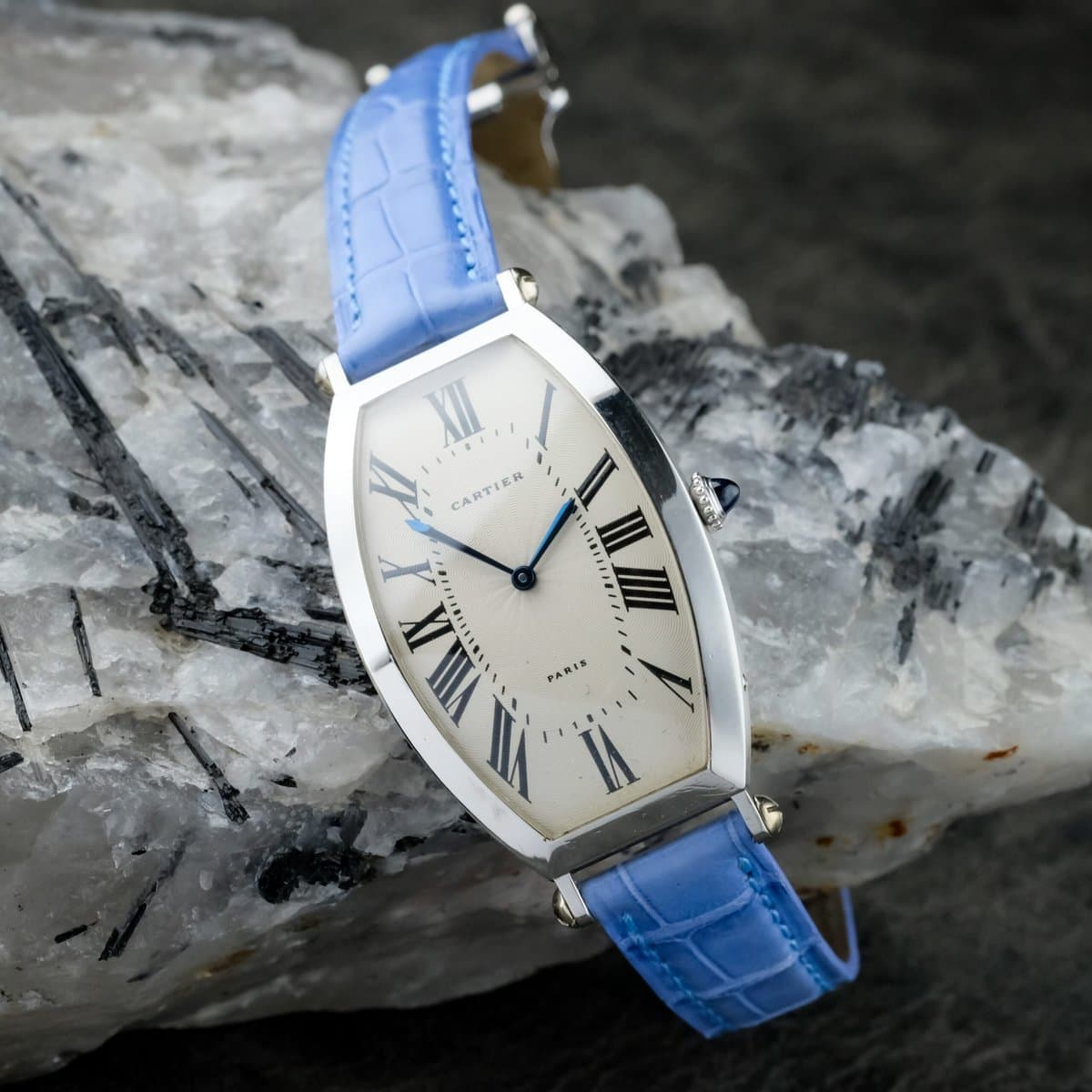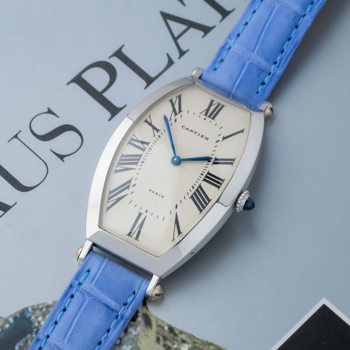 Fitted with a new light blue Cartier strap, this Tonneau XL remains in very good overall condition with only minimal signs of wear. A striking and elegant piece from Cartier’s pre CPCP era, it perfectly captures the maison’s distinctive aesthetic and artisanal excellence.