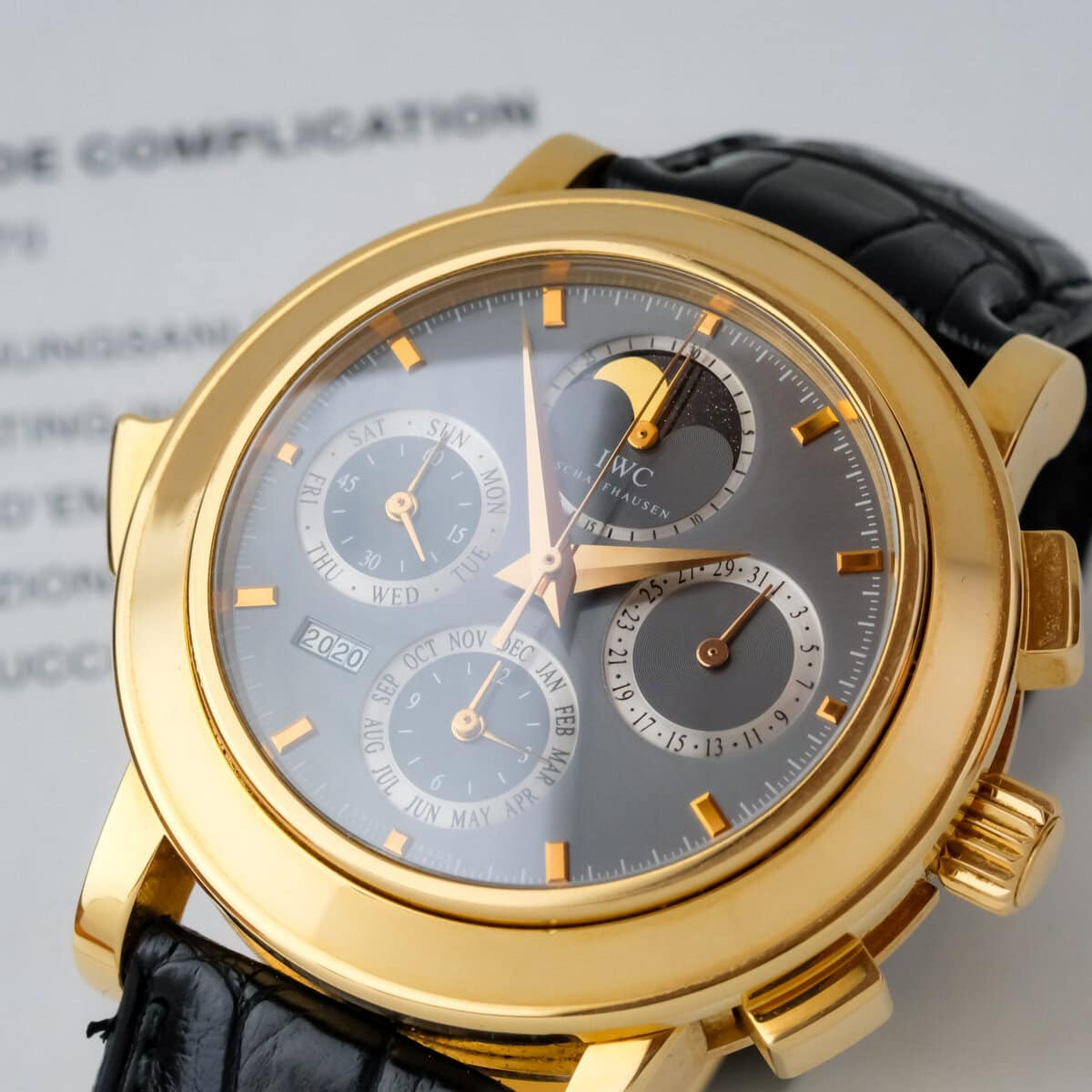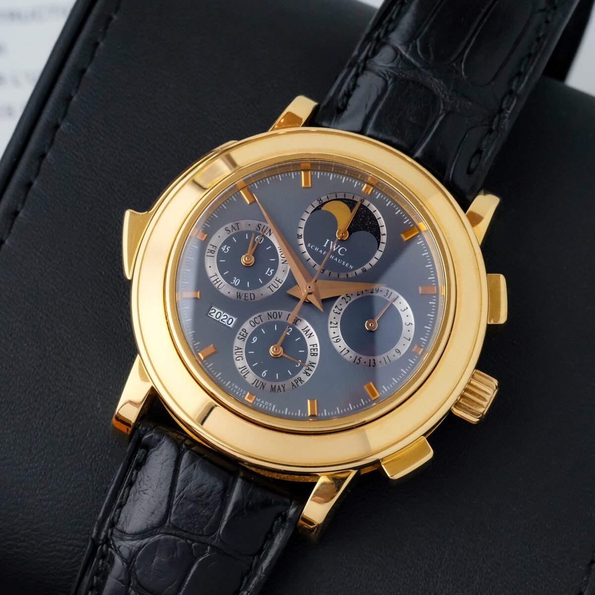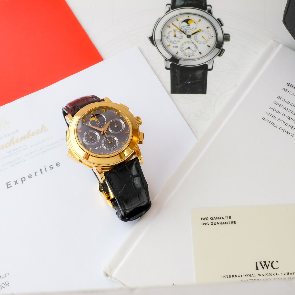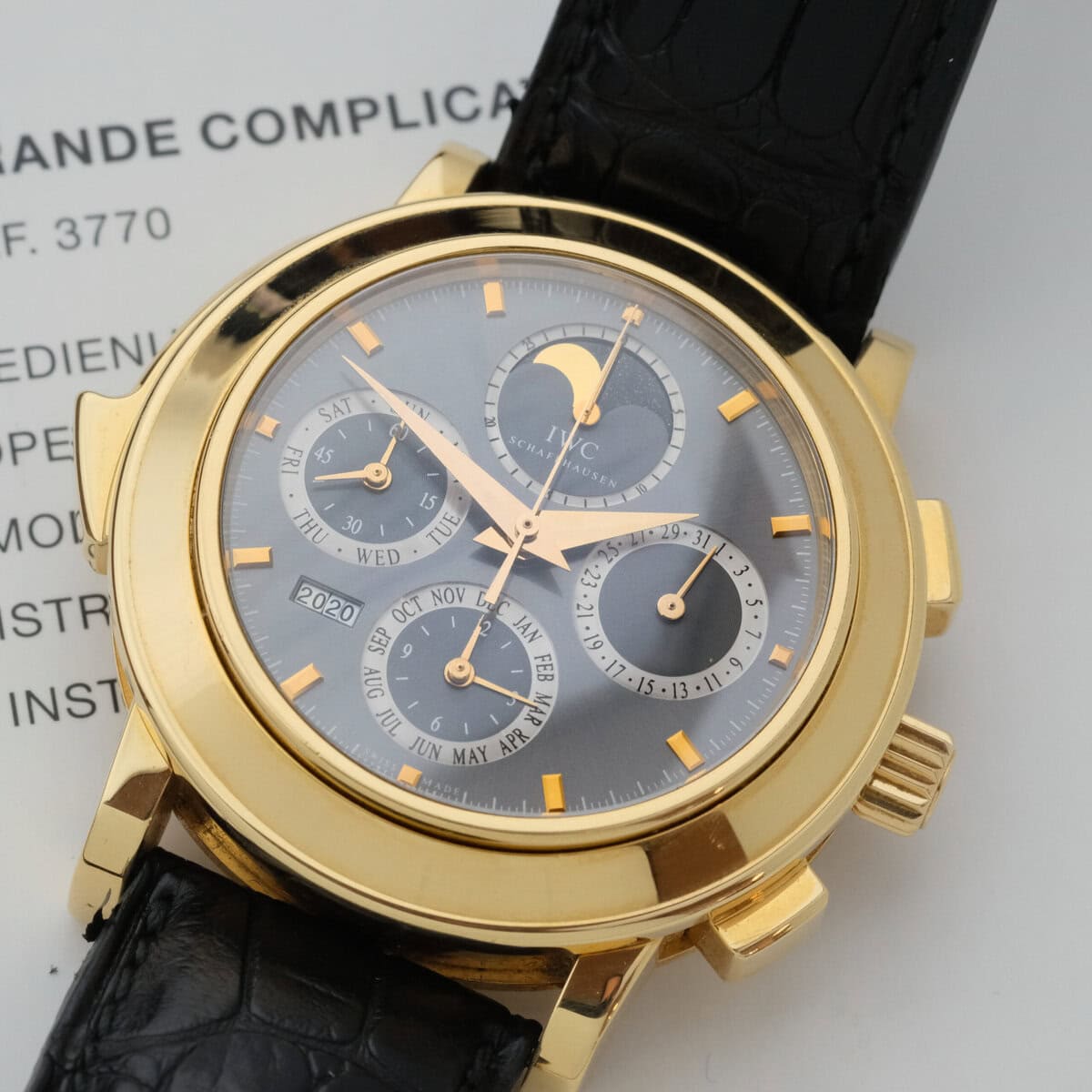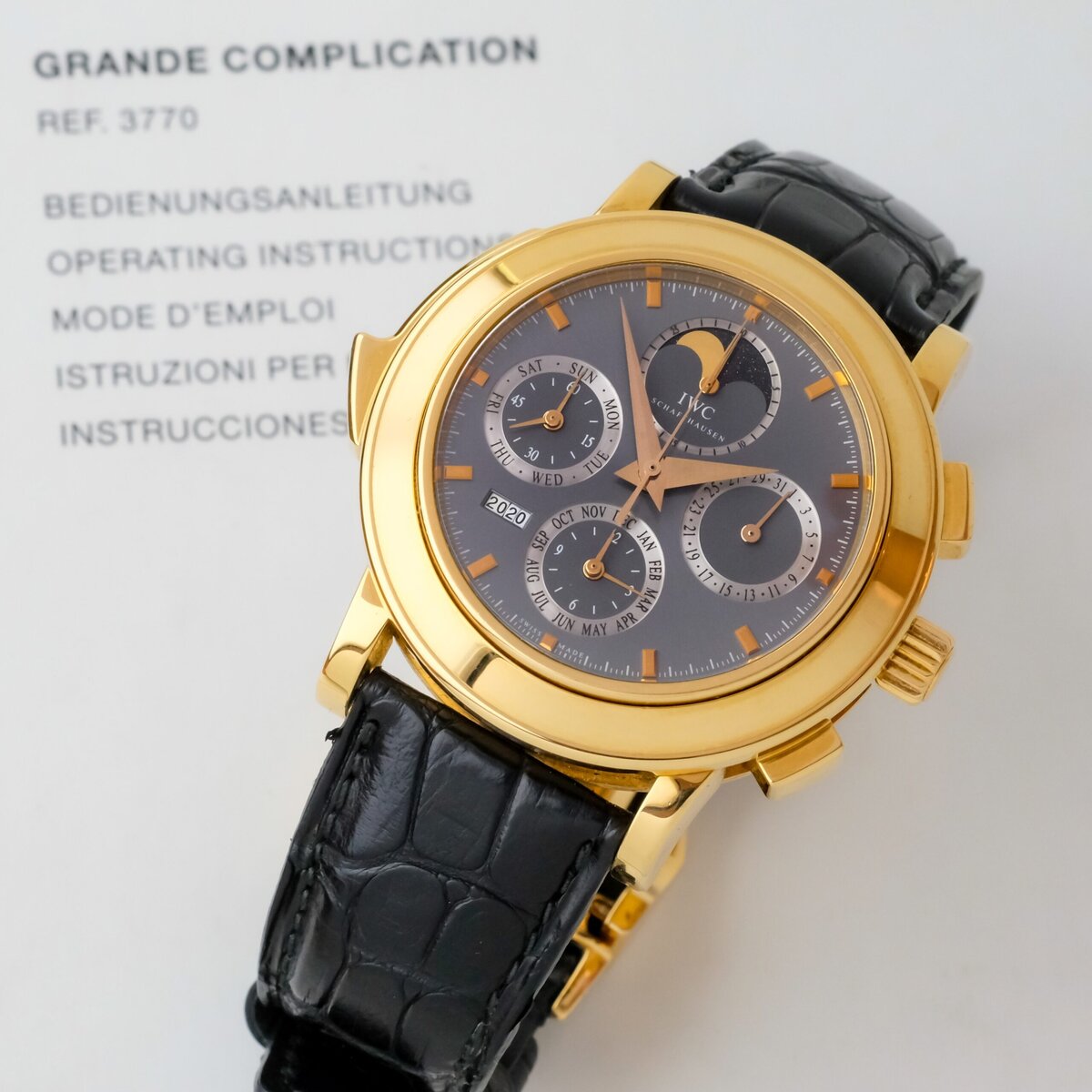 This example is preserved in good overall condition with only light and honest signs of wear on the case and clasp. It is offered without its original box but includes the official papers and the original book about the Grande Complication collection. Rarely seen on the market, the IWC Grande Complication reference 3770 in rose gold stands as a milestone in modern watchmaking and a centerpiece in any serious collection of high complications