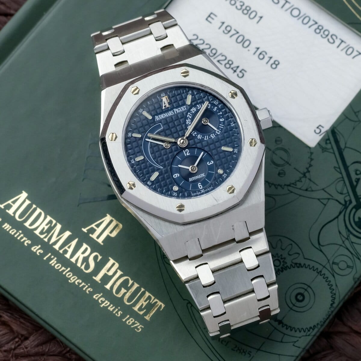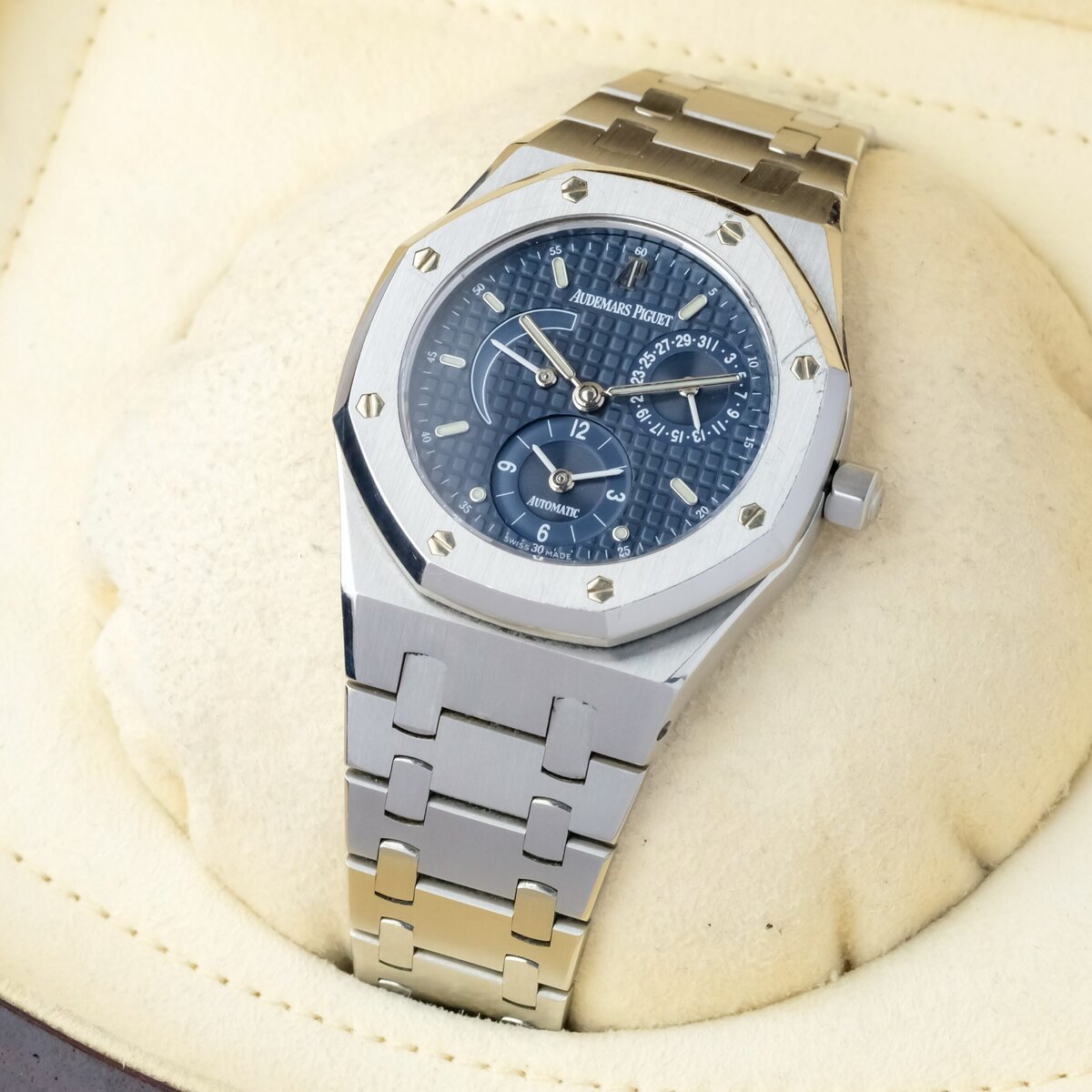 Audemars Piguet Royal Oak Dual Time reference 25730ST.OO.0789ST.07 in stainless steel, measuring 36 millimeters and powered by an automatic movement. This reference features the classic Royal Oak case with integrated bracelet and adds useful complications including a second time zone, date display and power reserve indicator.