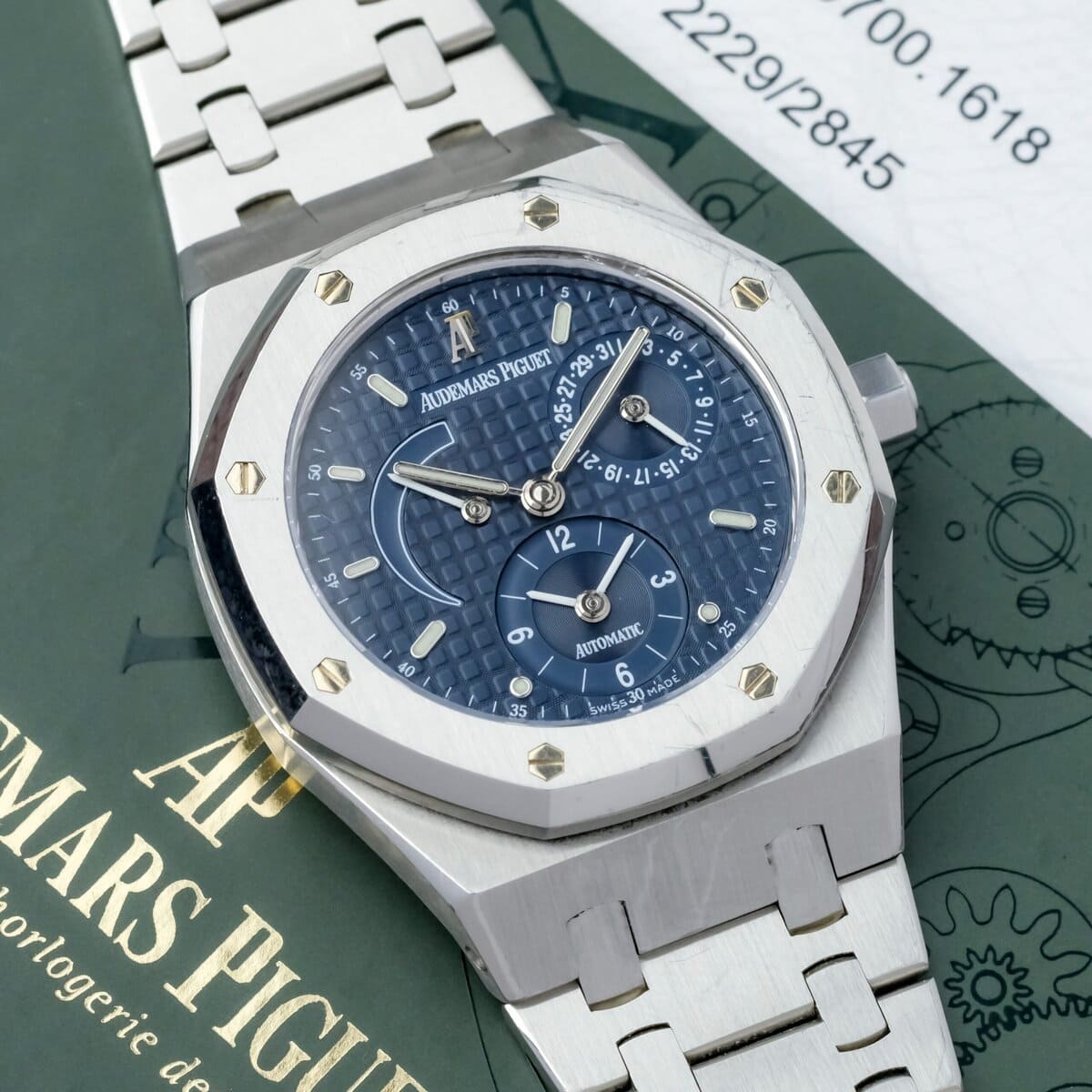 Offered with its original box and papers, this Royal Oak Dual Time is a well balanced and highly wearable complication model, combining iconic design with practical functionality in a desirable mid size format.