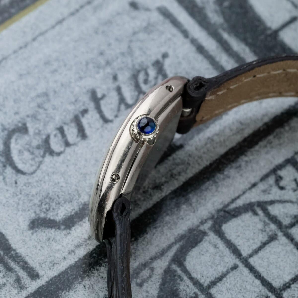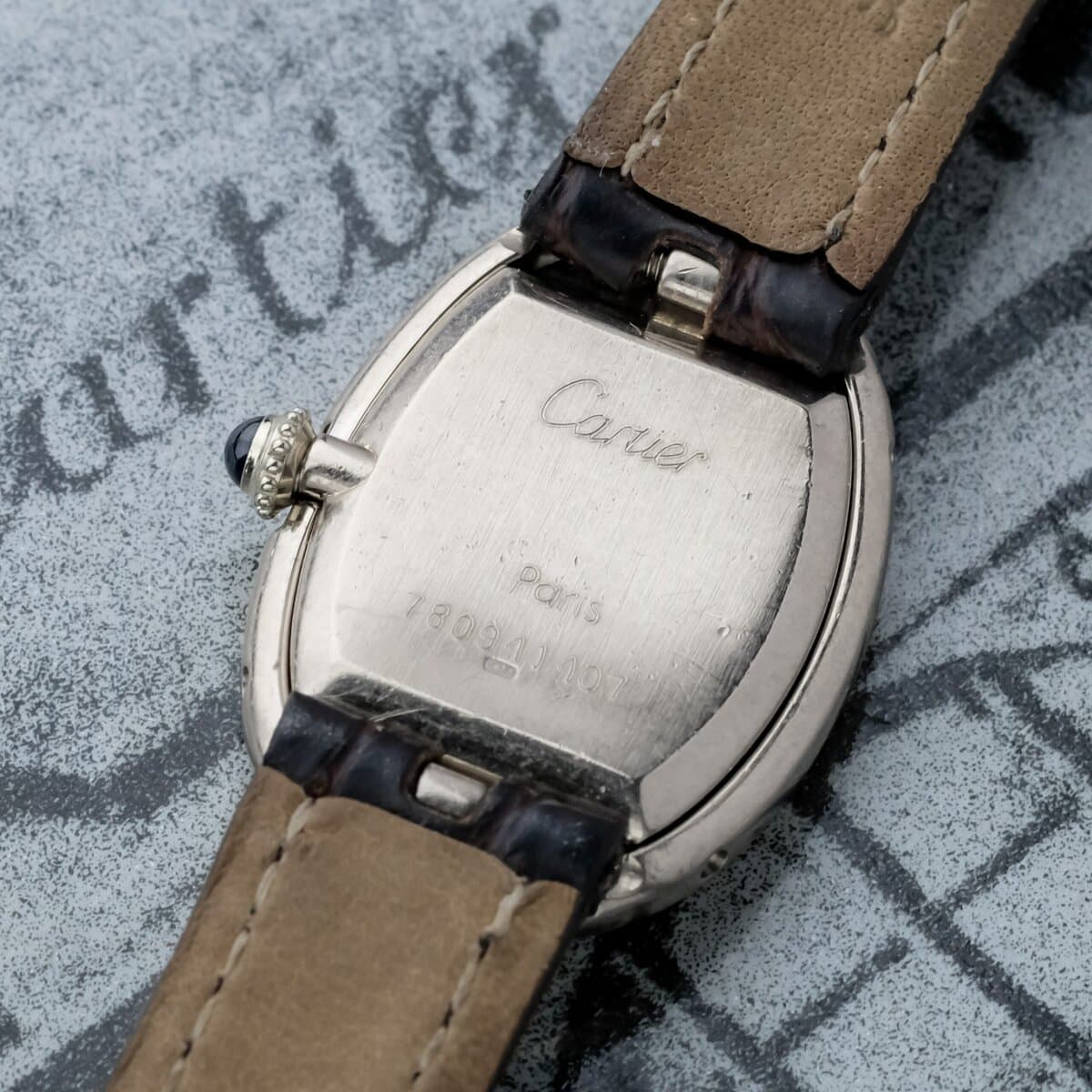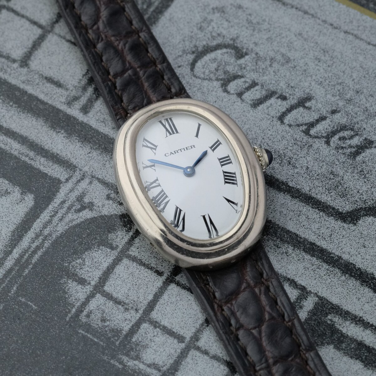 The case remains in excellent unpolished condition with sharp engravings on the caseback and only light, normal signs of wear. Seldom encountered in this configuration, this Baignoire GM is a highly desirable vintage Cartier that combines refined proportions, mechanical charm and the discreet luxury of white gold.