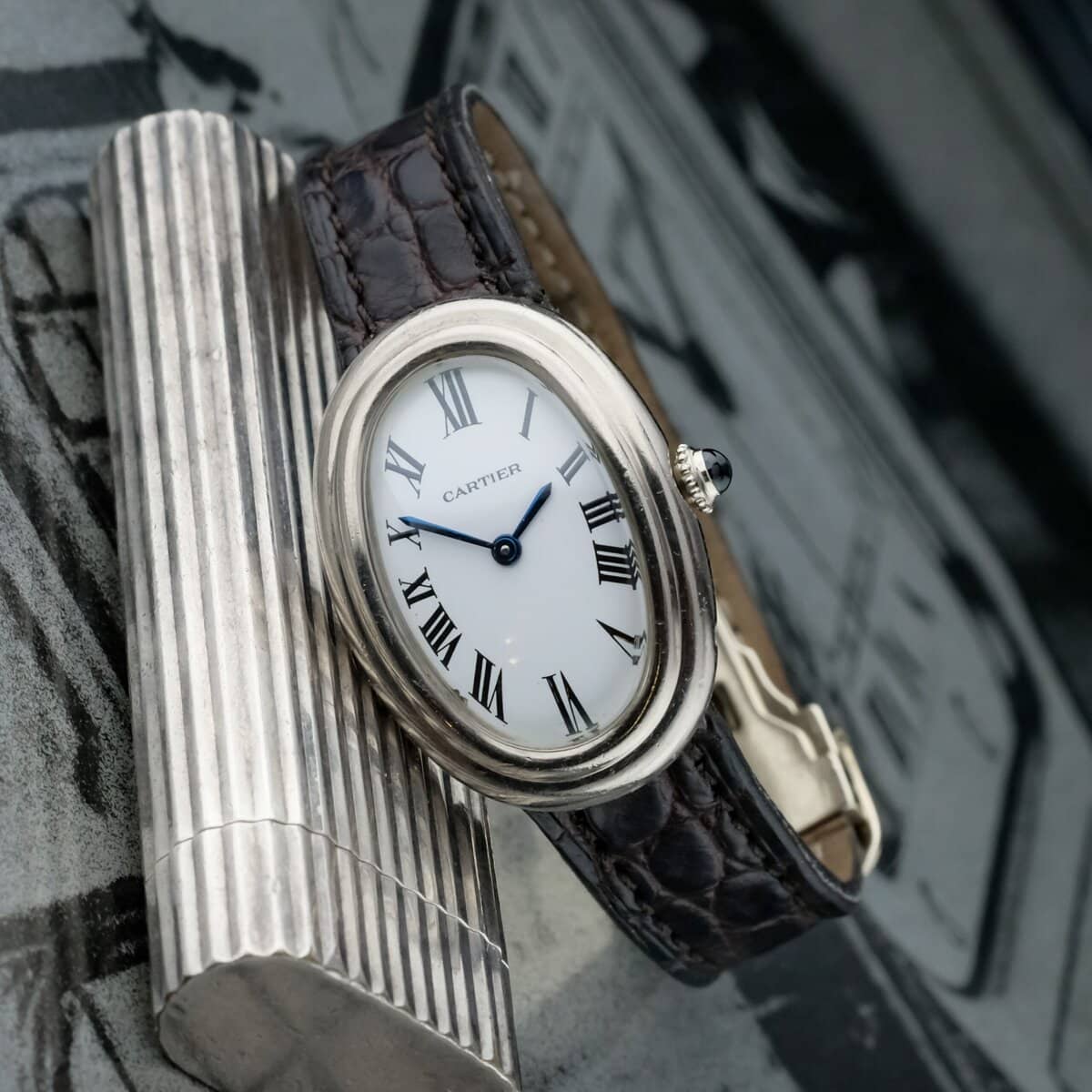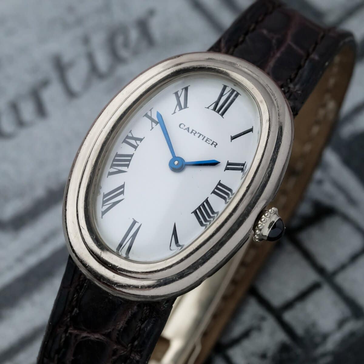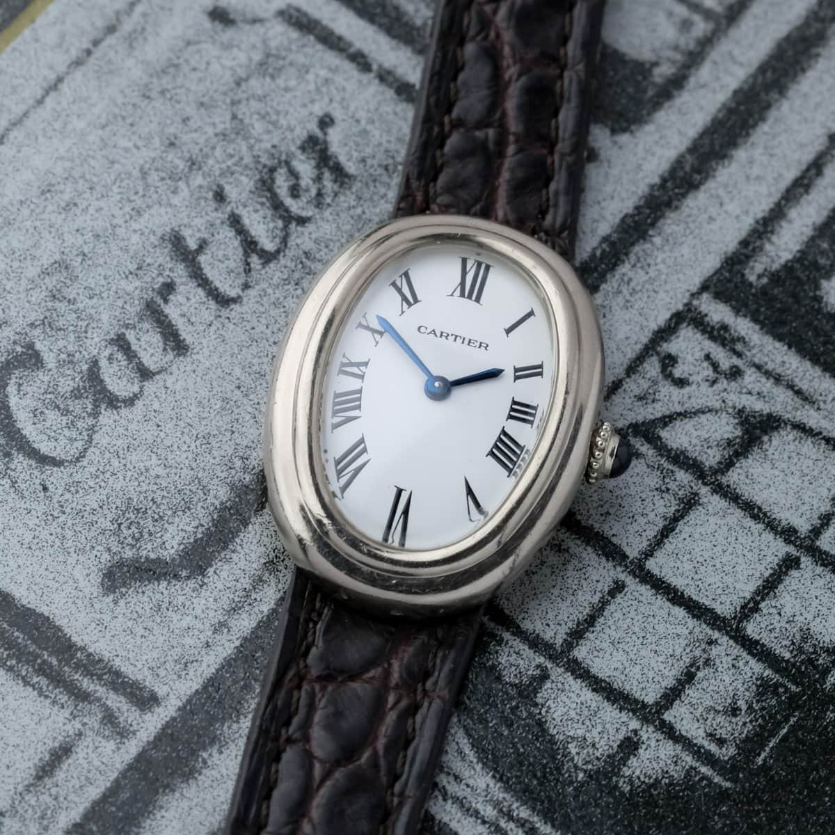 The case remains in excellent unpolished condition with sharp engravings on the caseback and only light, normal signs of wear. Seldom encountered in this configuration, this Baignoire GM is a highly desirable vintage Cartier that combines refined proportions, mechanical charm and the discreet luxury of white gold.