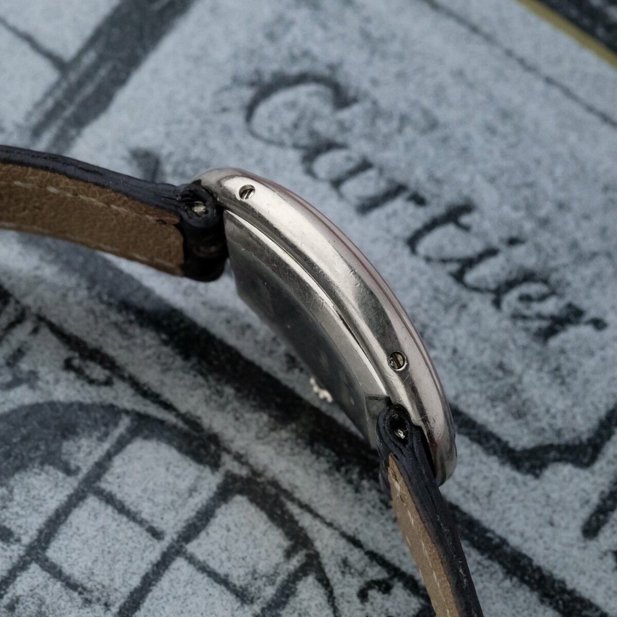 The watch is powered by a hand wound movement and fitted with a Paris signed dial, a detail that is highly sought after by collectors and further emphasizes its originality. The dial is perfectly preserved, showing no signs of age, while the Roman numerals and blued steel hands reflect Cartier’s timeless design language.
