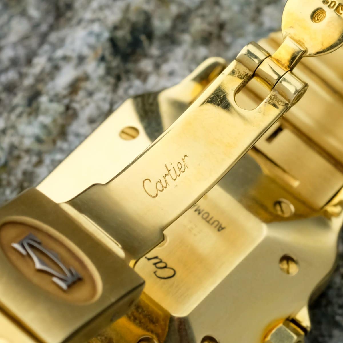 This Cartier Santos Carrée reference 2960 in 18k yellow gold with an exceptionally rare natural stone ferrite dial is truly an unusual find. The dial is in perfect condition with no cracks, maintaining its original deep texture and unique metallic sheen. Ferrite dials are among the rarest configurations for the Carrée line and are highly sought after by collectors. The case is extremely sharp with crisp edges, clean transitions and well preserved original brushing. All bezel and bracelet screws remain sharp and undamaged, further reflecting the outstanding overall condition of the watch. The automatic movement runs reliably with smooth setting and winding. Offered as watch only, this is an unusually well preserved and exceptionally rare Santos Carrée with a flawless ferrite dial and an impressively sharp case, making it a standout example of the reference.
