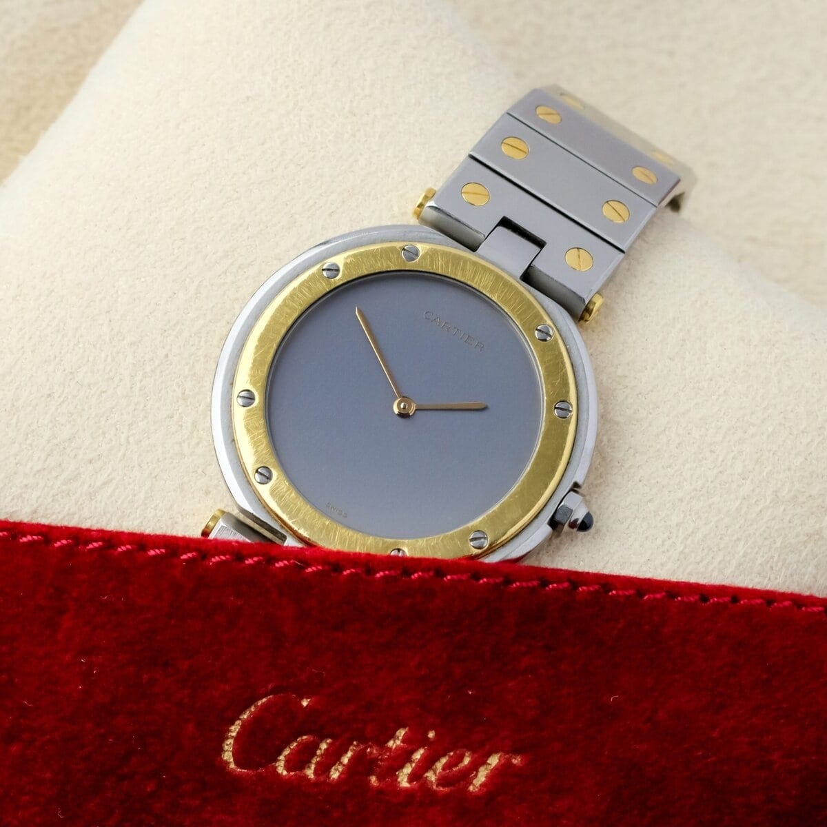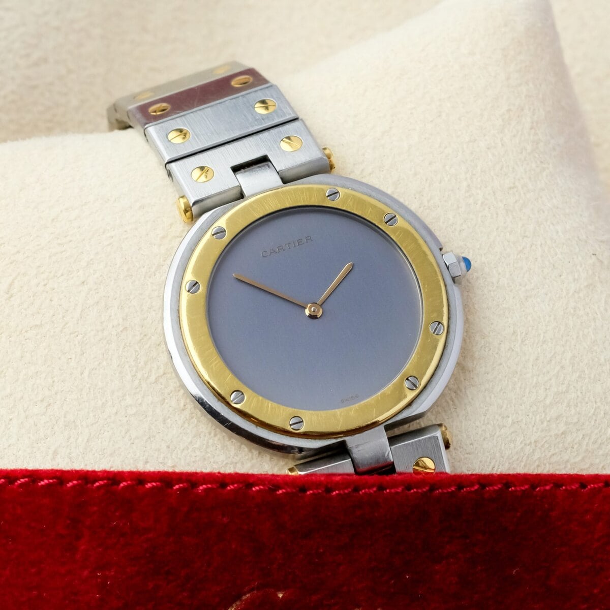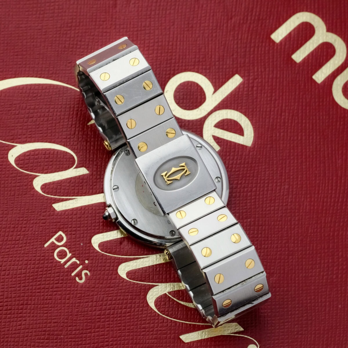 Powered by a quartz movement, the watch is precise and easy to wear. Presented in good overall condition, this is a rare opportunity to own a lesser seen and quietly distinctive Cartier classic.