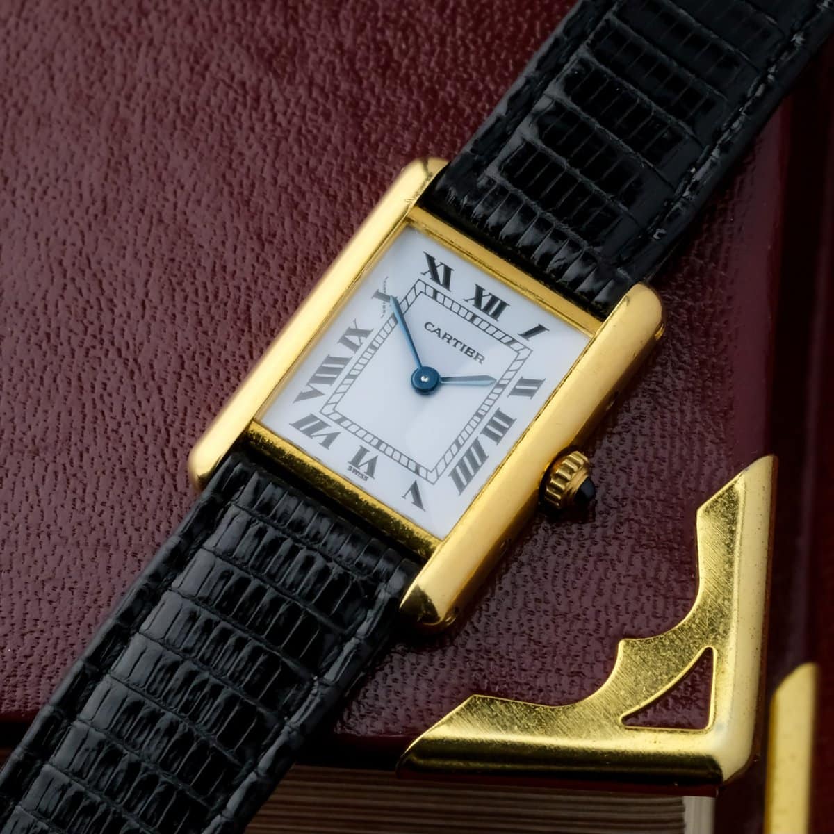 The Cartier Tank PM Ref. 66001 is a refined Lady model that embodies the timeless elegance of the iconic Tank line. Its rectangular 18K yellow gold case, classic white dial with Roman numerals, and blued steel hands reflect Cartier's unmistakable design heritage.