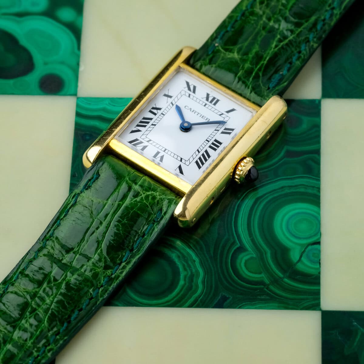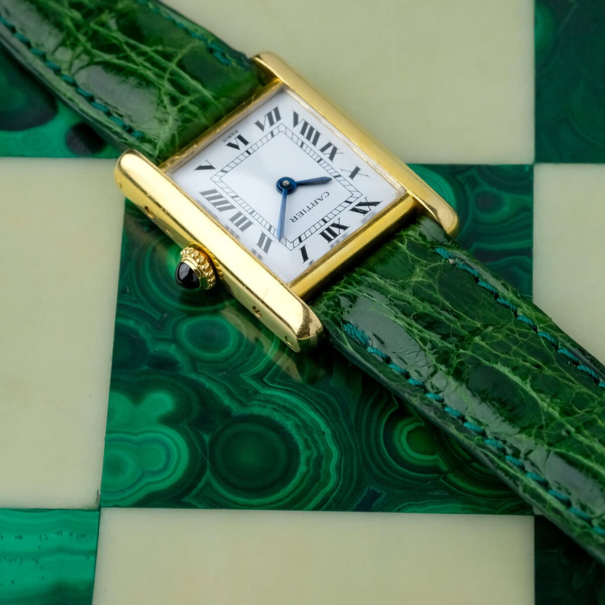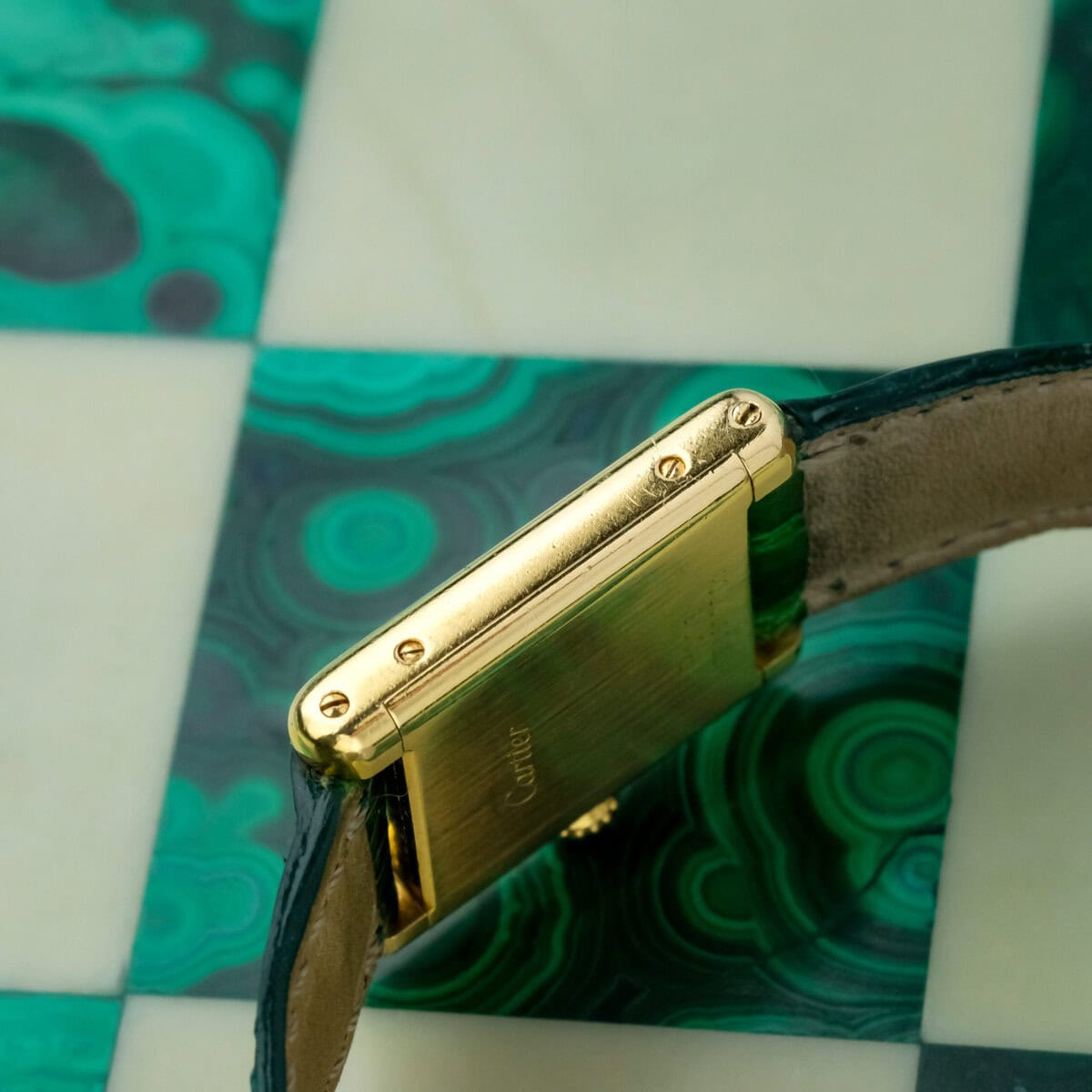 Crafted from 18k yellow gold, the rectangular case showcases the harmonious lines and delicate curves typical of late 1970s Cartier production. The watch is powered by a manual-winding movement, staying true to the pure and traditional watchmaking spirit of this era.