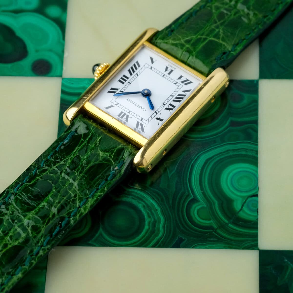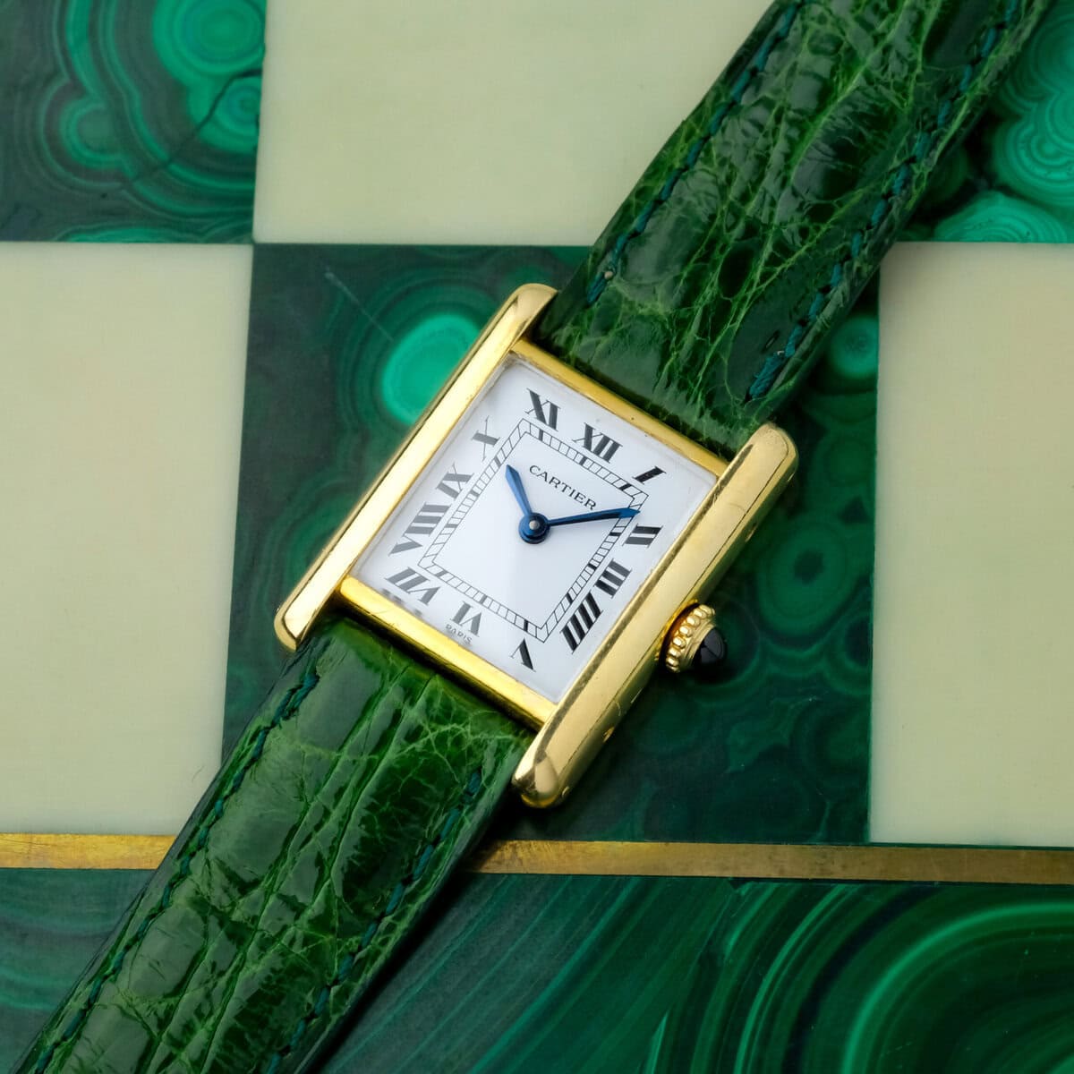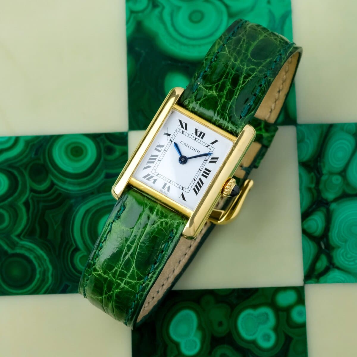 Crafted from 18k yellow gold, the rectangular case showcases the harmonious lines and delicate curves typical of late 1970s Cartier production. The watch is powered by a manual-winding movement, staying true to the pure and traditional watchmaking spirit of this era.