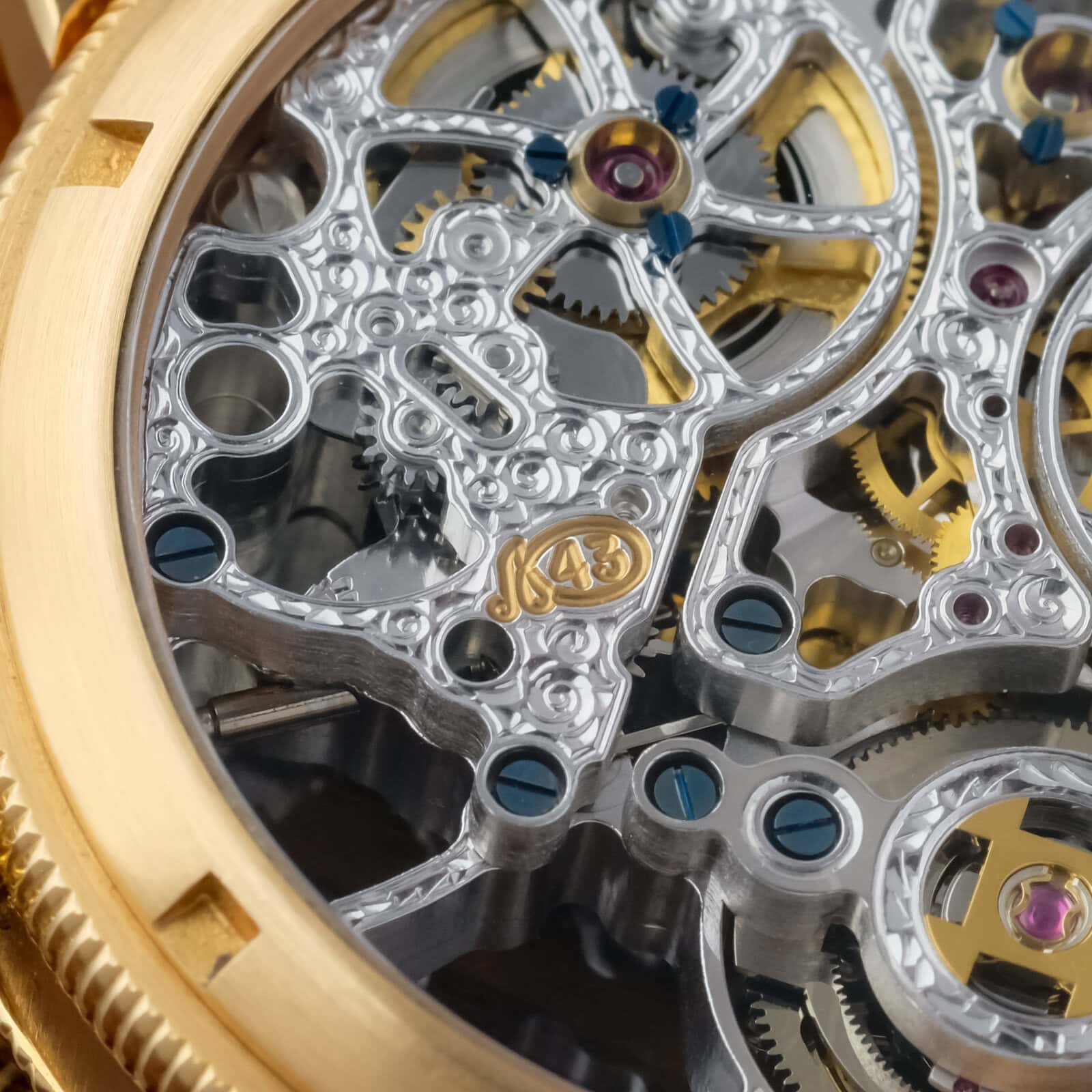 Chronoswiss Tourbillon Régulateur Skeleton reference 3121 R in 18k rose gold, measuring 38 millimeters and powered by a manual winding movement. This reference combines Chronoswiss’ signature regulator layout with an openworked skeletonized execution and visible tourbillon.