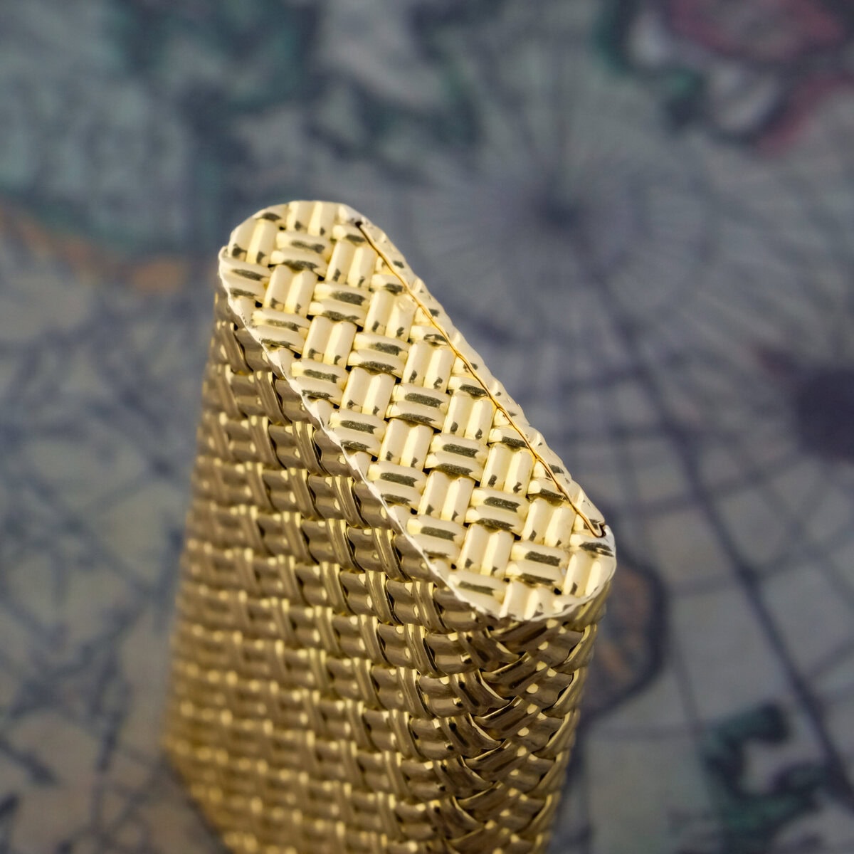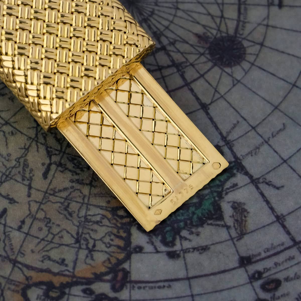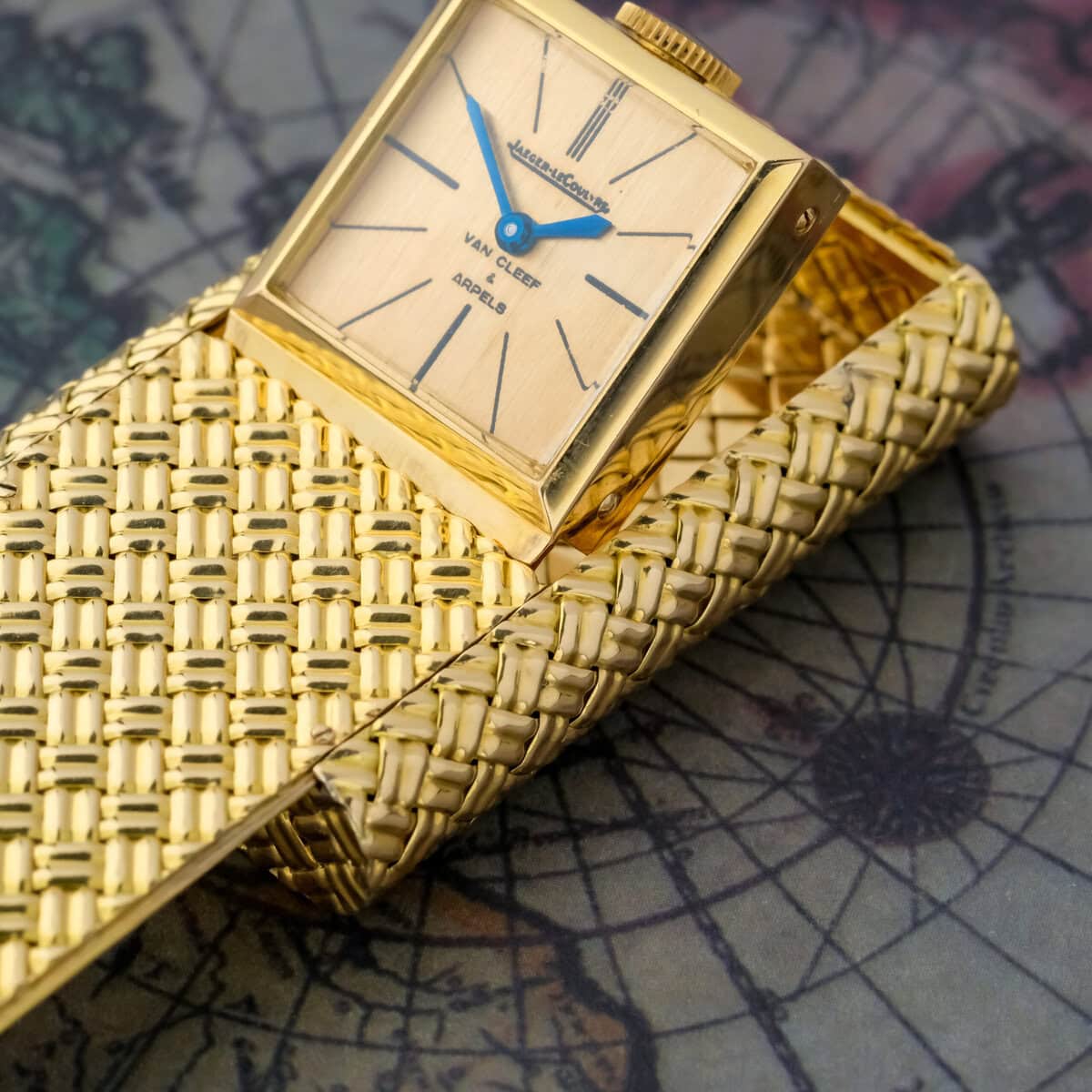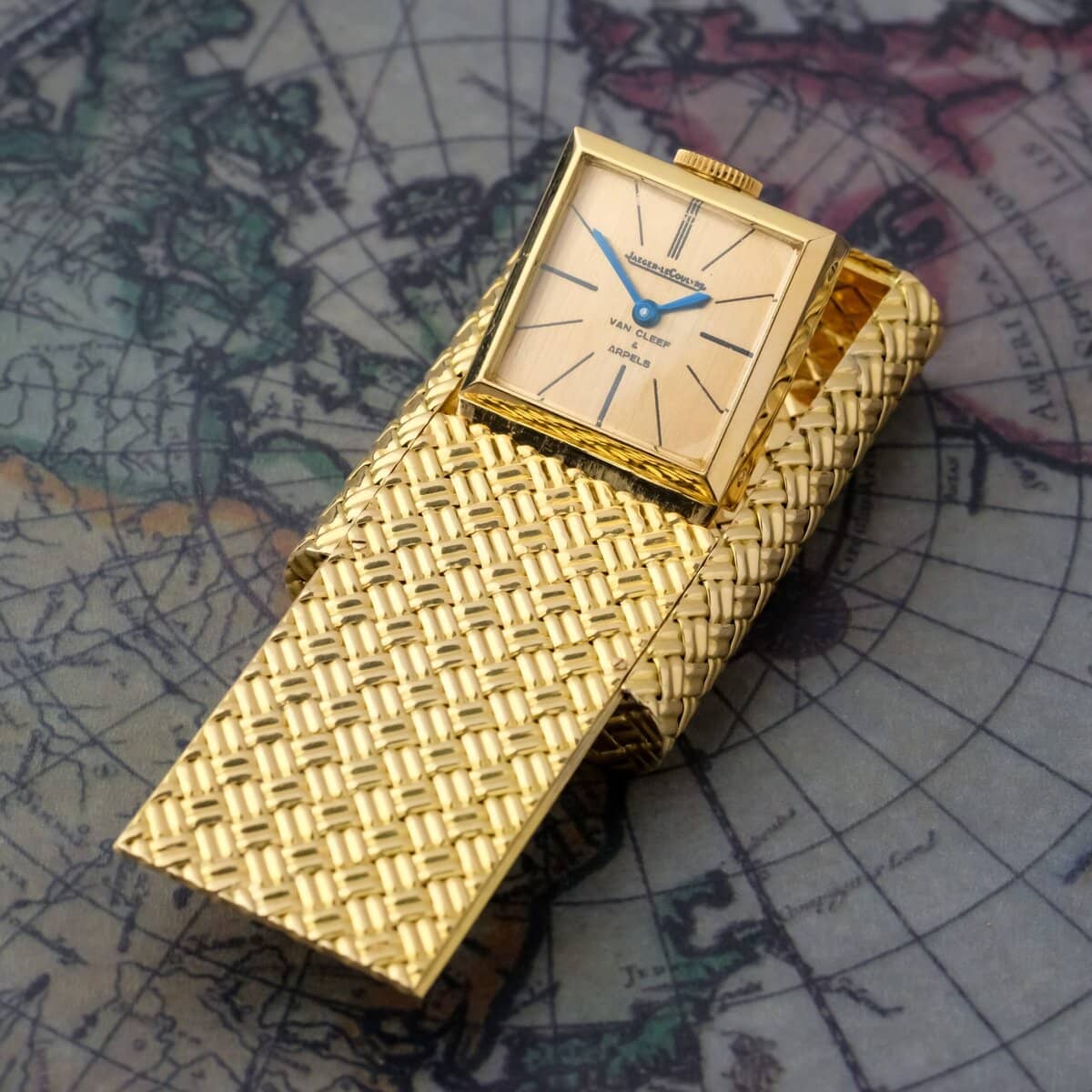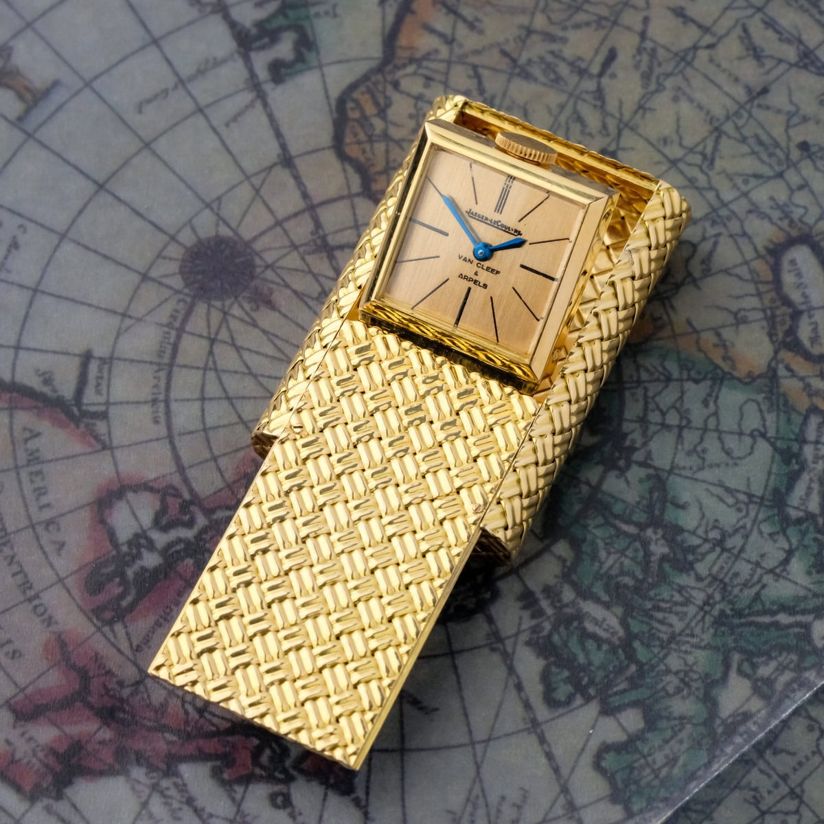 The design captures the discreet luxury and technical creativity that defined mid-century collaborations between Jaeger LeCoultre and Van Cleef & Arpels. The case is preserved in very good overall condition, showing sharp lines, beautifully finished surfaces, and crisp hallmarks that attest to its originality and quality.