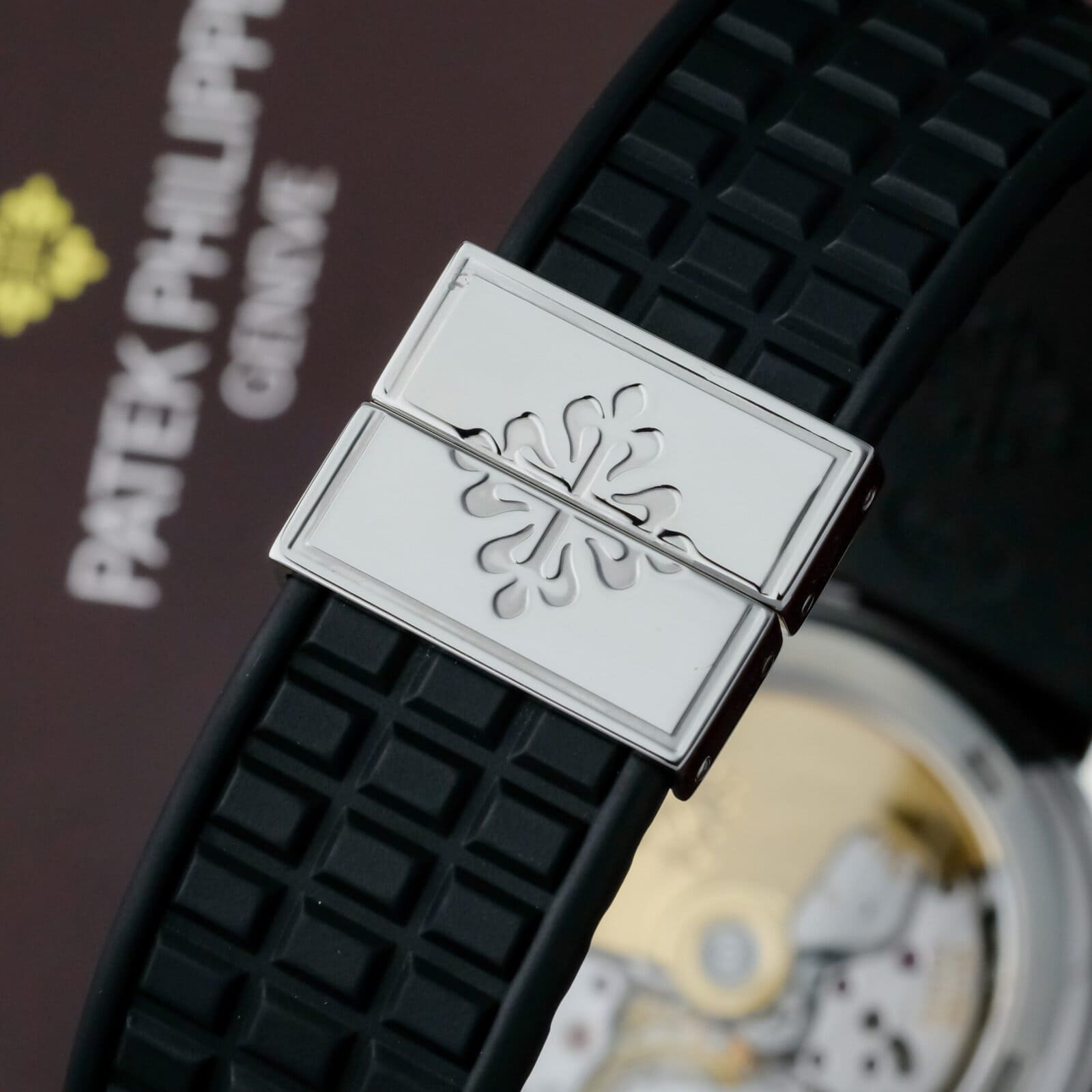 Bracelet: Black rubber strap stainless steel Patek Philippe double folding clasp