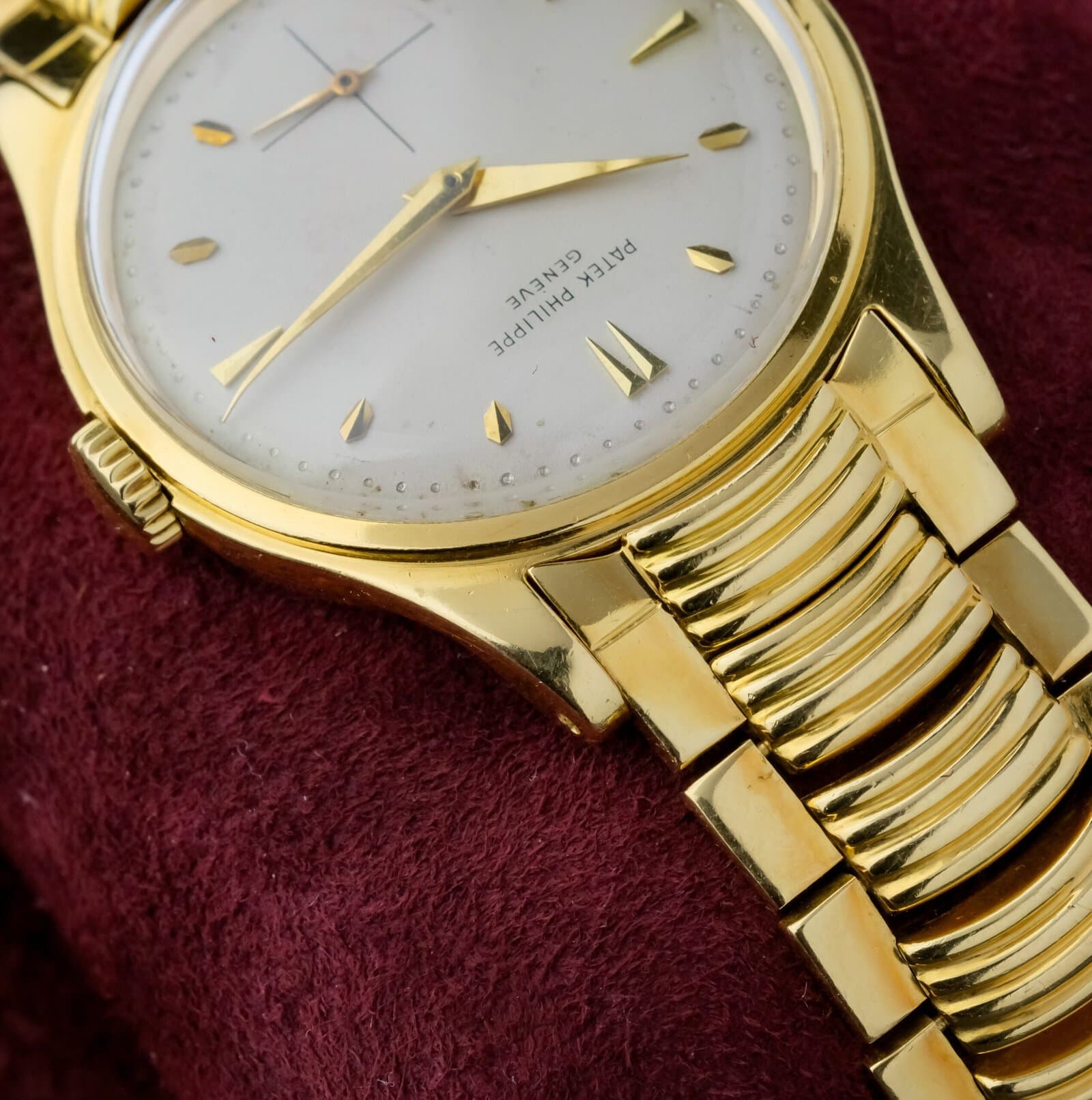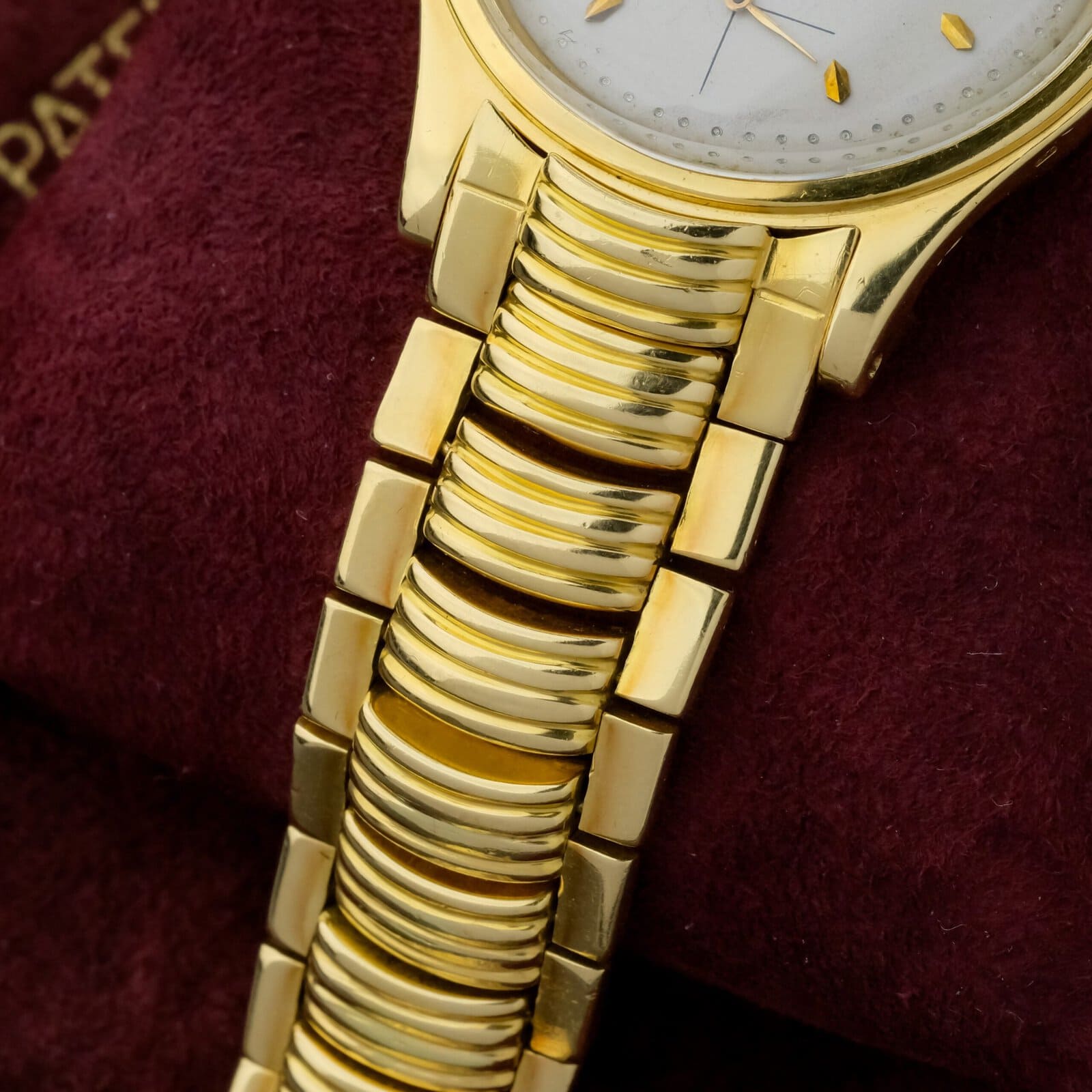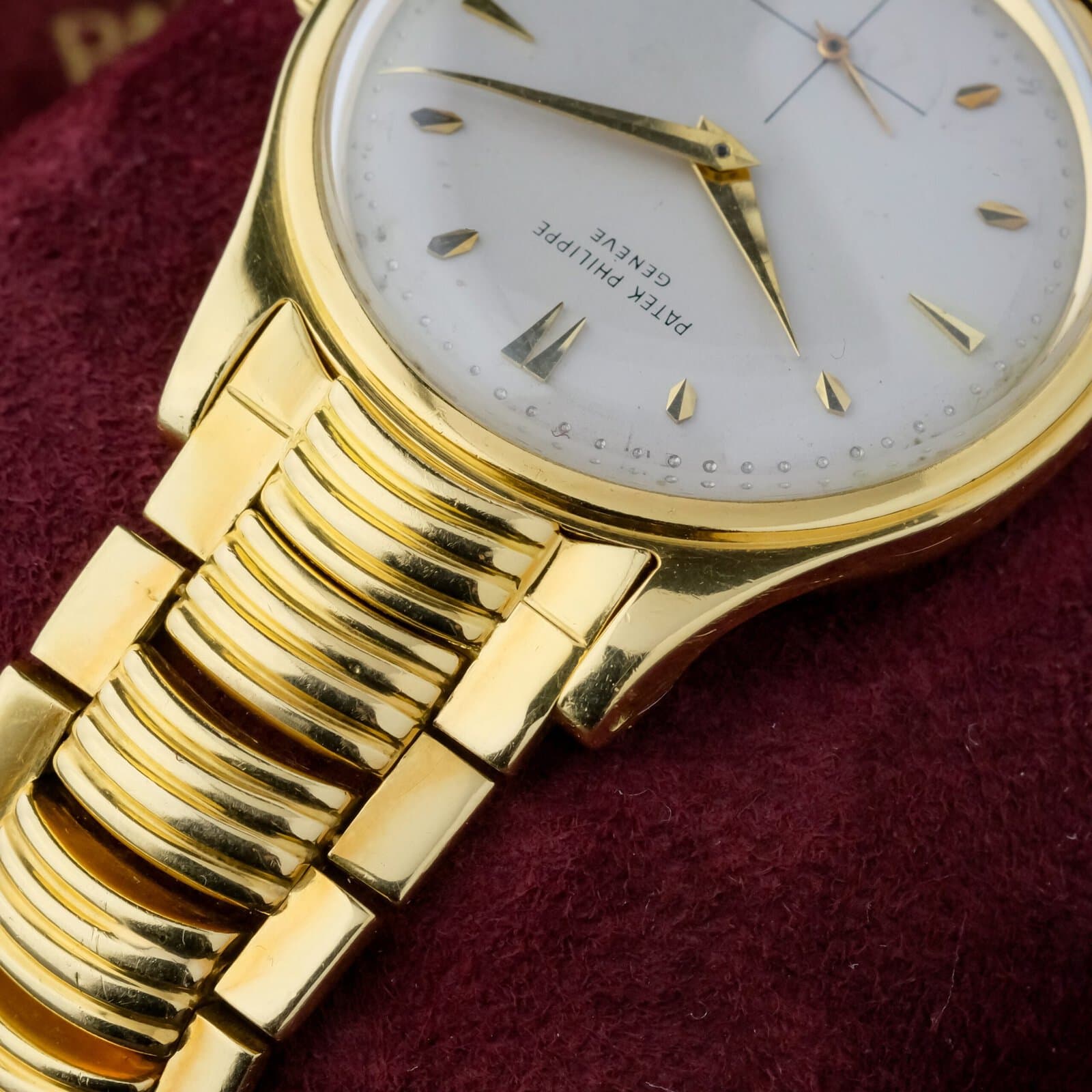 The beige to cream dial is clean and well preserved, offering a warm and classic appearance. A defining highlight of this example is the extremely rare Ponti Gennari gold bracelet, known as the “lobster tail” bracelet, adding exceptional collectability and presence. It's the only example of a ref. 2509 with Ponti Gennari bracelet we know of.