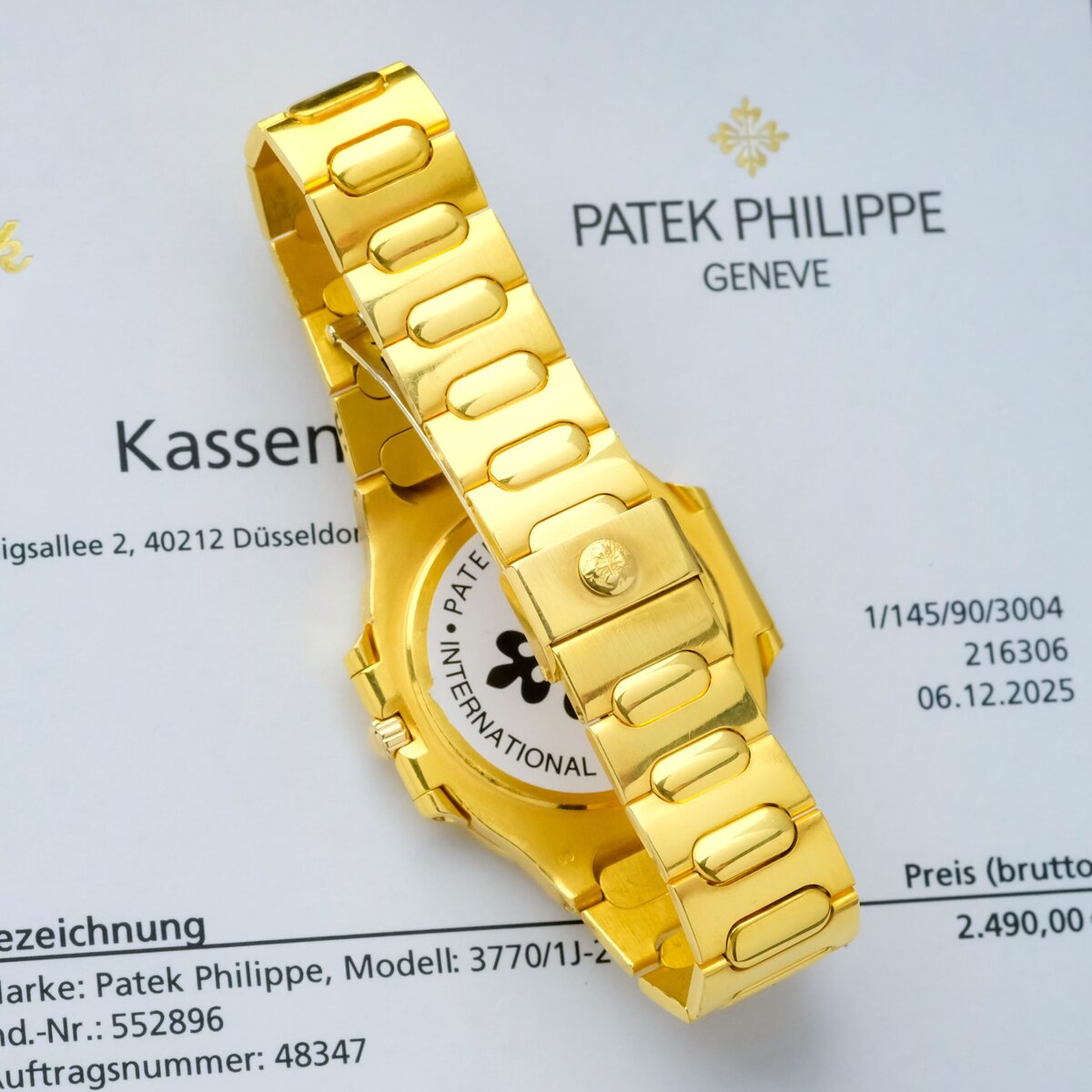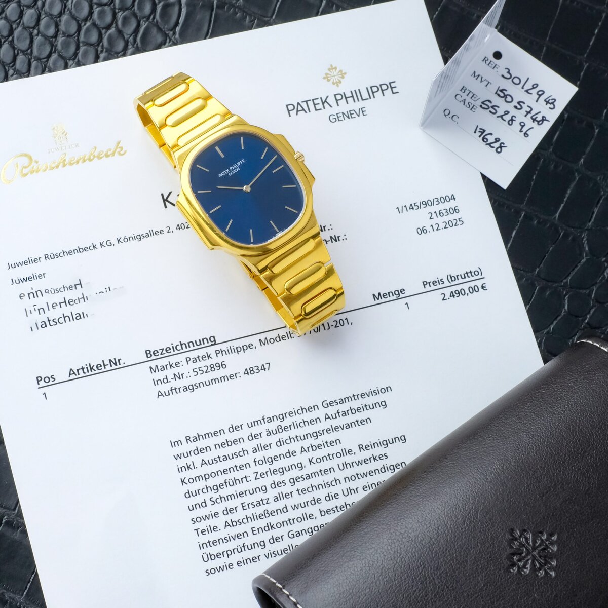 This example is offered as watch only and is accompanied by Patek Philippe service documentation from Rüschenbeck, including a valid service guarantee, confirming proper maintenance and technical integrity.
