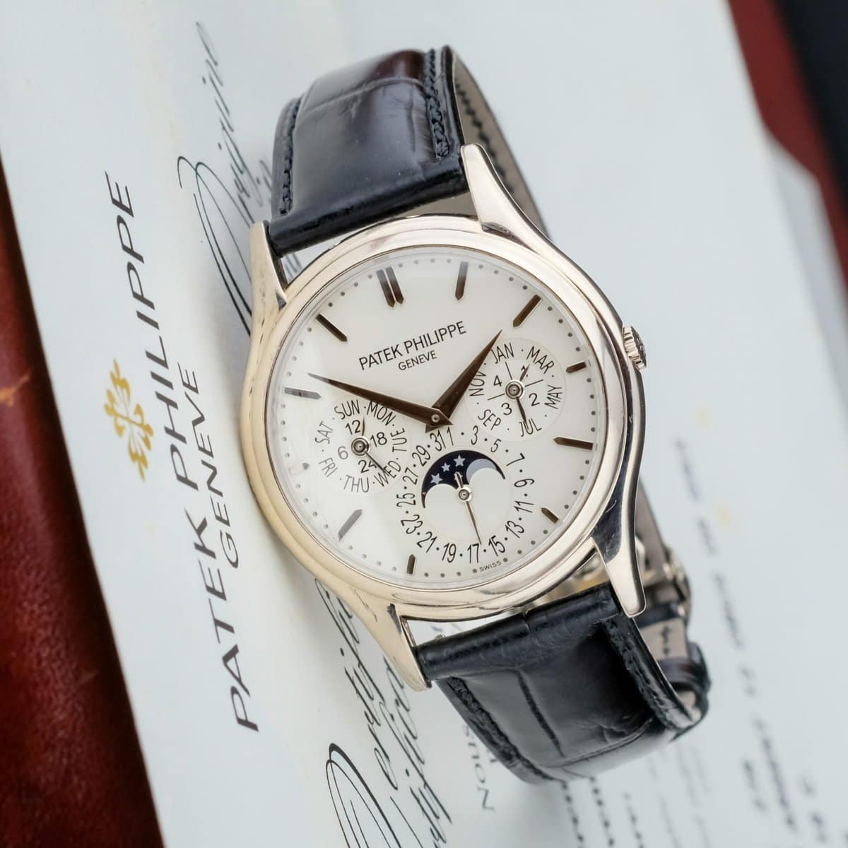 Offered as a complete full set, this 5140G provides a strong opportunity to acquire one of Patek Philippe’s most refined perpetual calendar models in a fully documented configuration.
