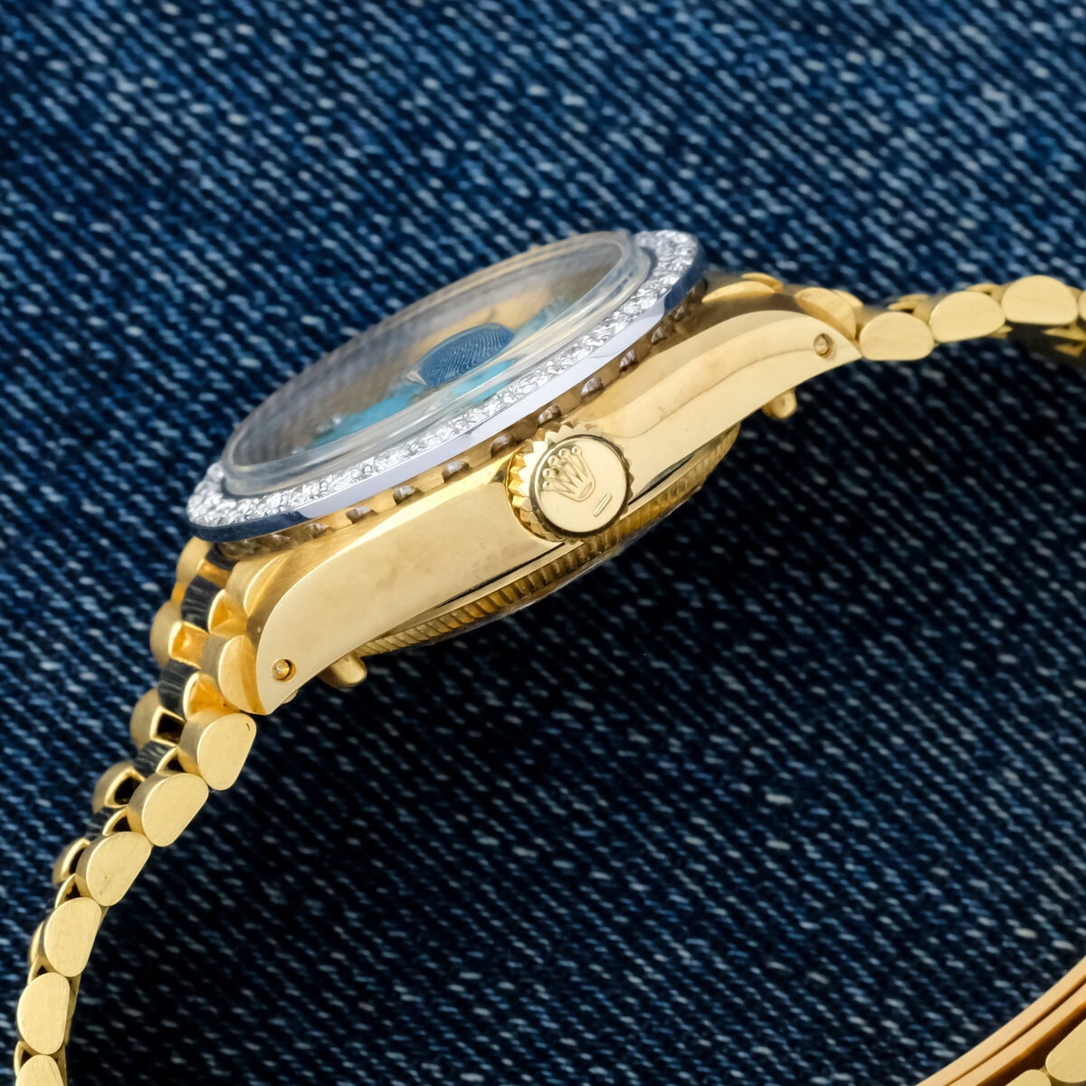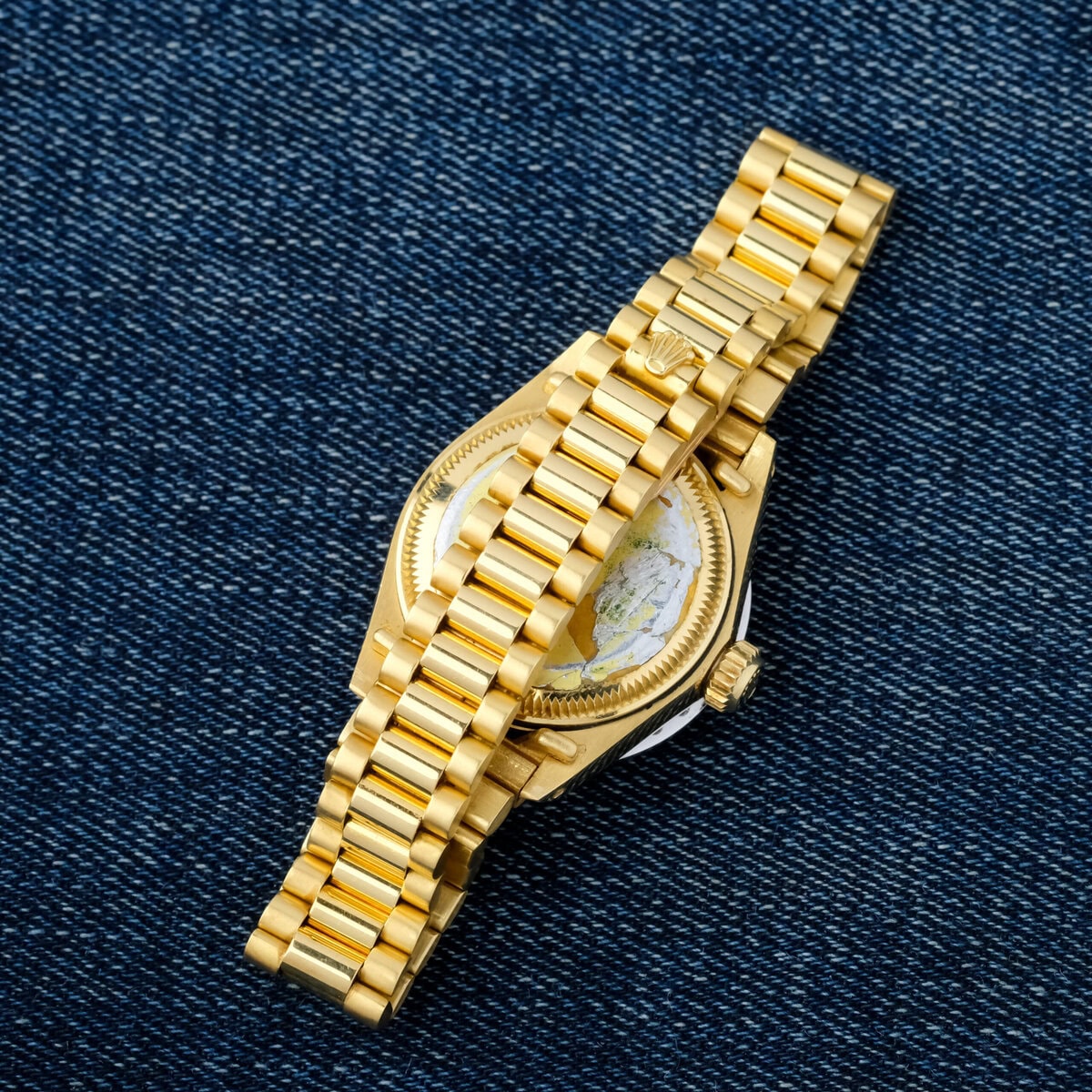 Presented on its matching 18k yellow gold President bracelet and preserved in good overall condition, this Lady Datejust 6917 is offered as watch only. A beautiful and highly desirable piece, it embodies the perfect balance of rarity, color and classic Rolex craftsmanship.