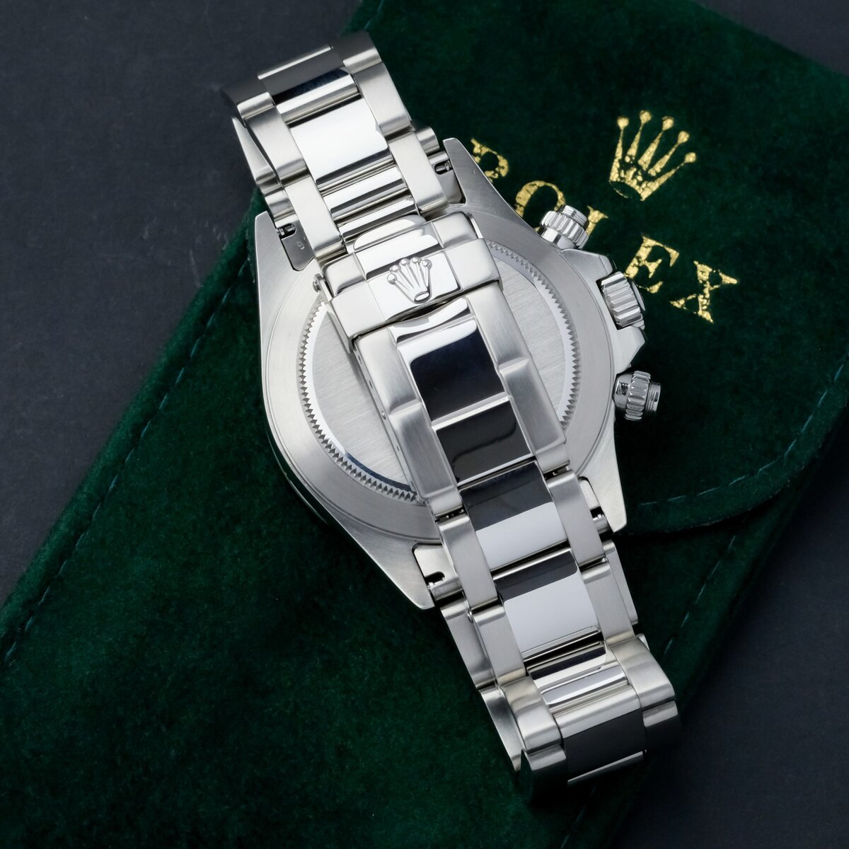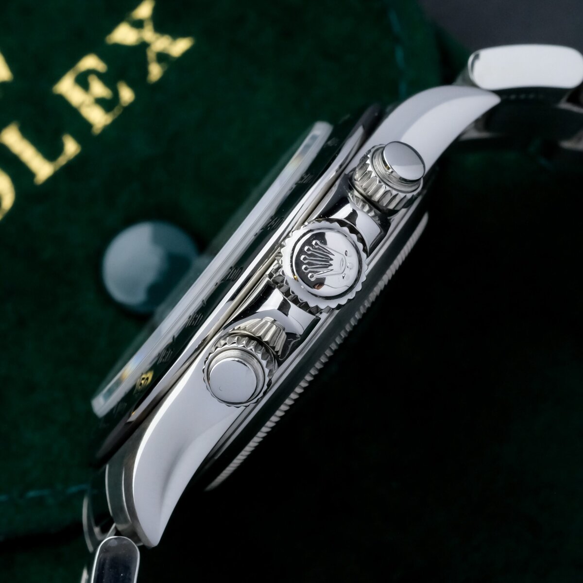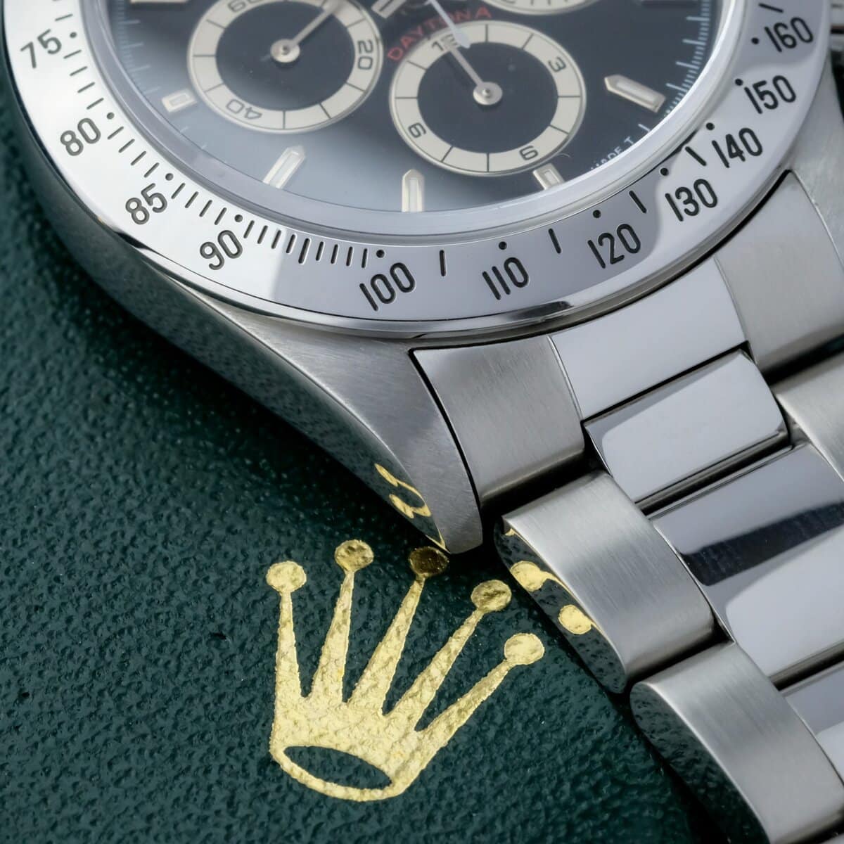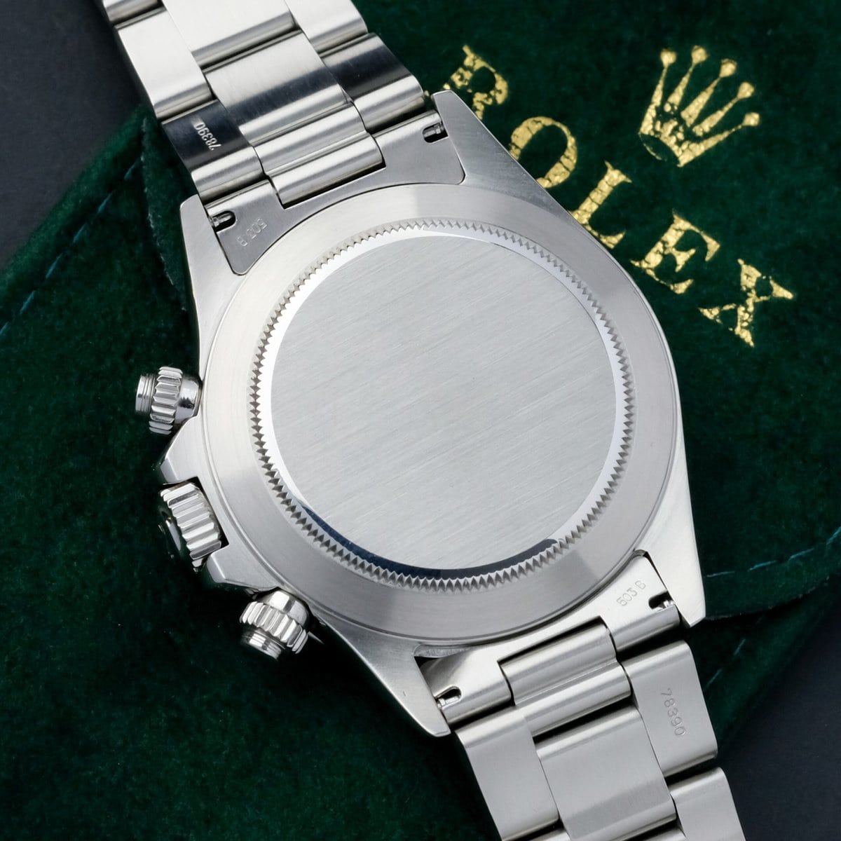 Rolex Daytona reference 16520 with black dial, powered by the Zenith based automatic caliber 4030. The 40 millimeter stainless steel case, screw down pushers and tachymeter bezel give the watch its unmistakable Daytona presence.