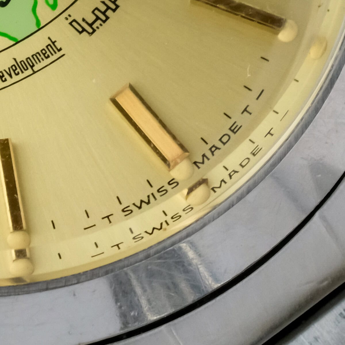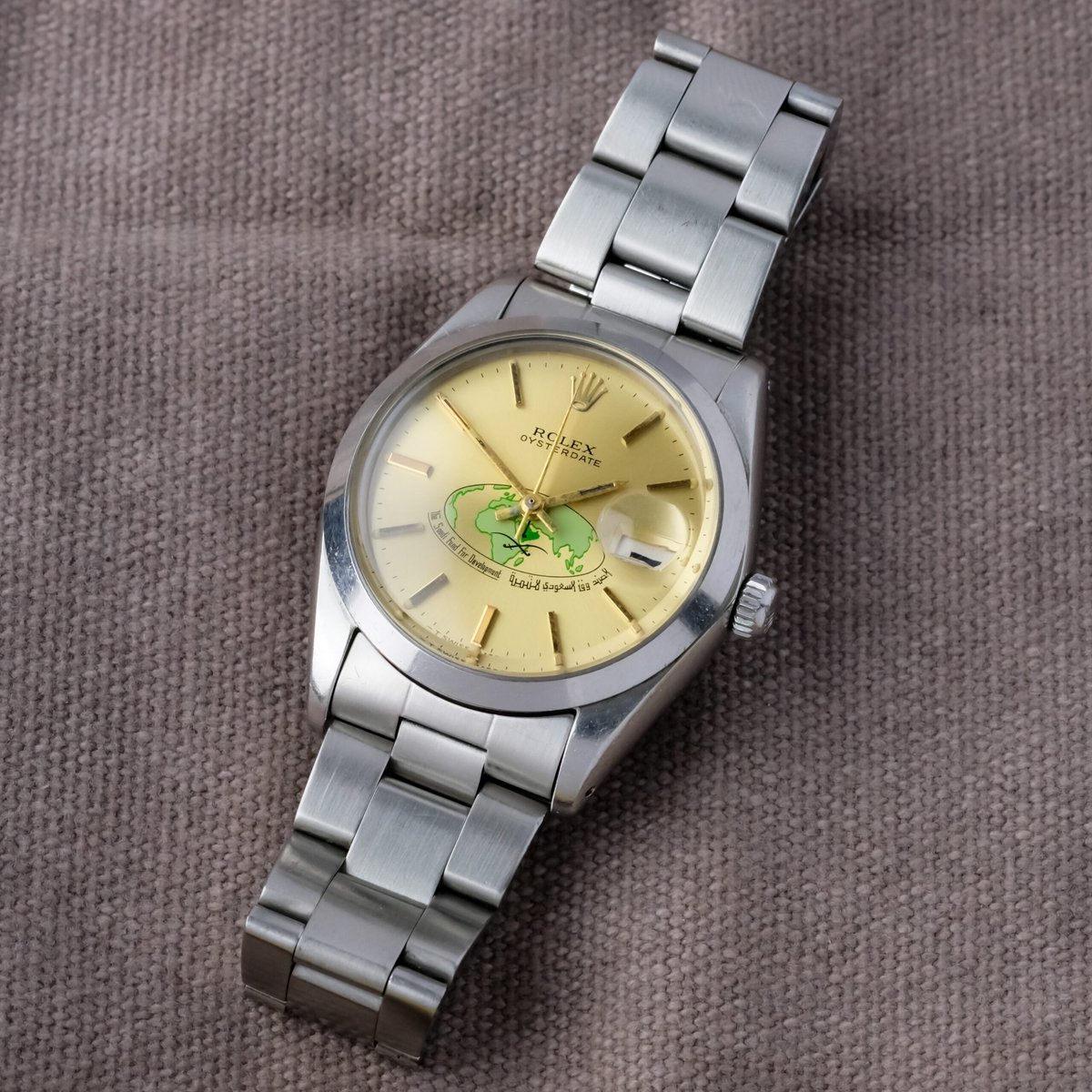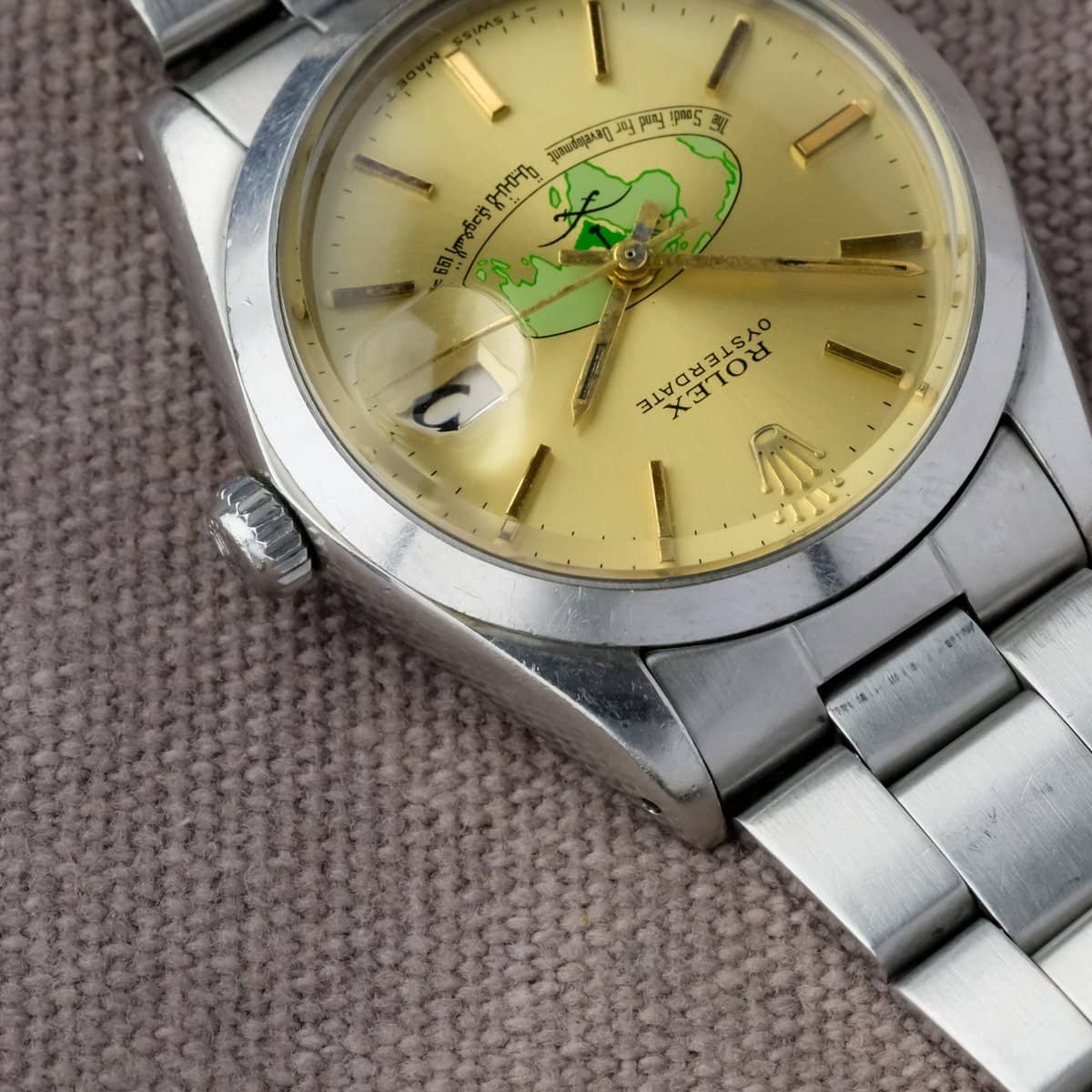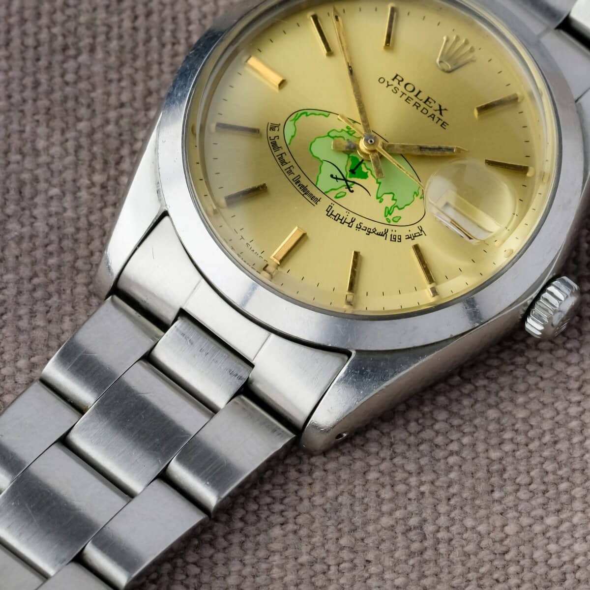 What makes this piece especially noteworthy is its exceptionally rare dial, printed with the emblem of the Saudi Fund for Development. The champagne-toned surface remains in outstanding condition with crisp, perfectly preserved printing, giving the watch both historical and collectible appeal.